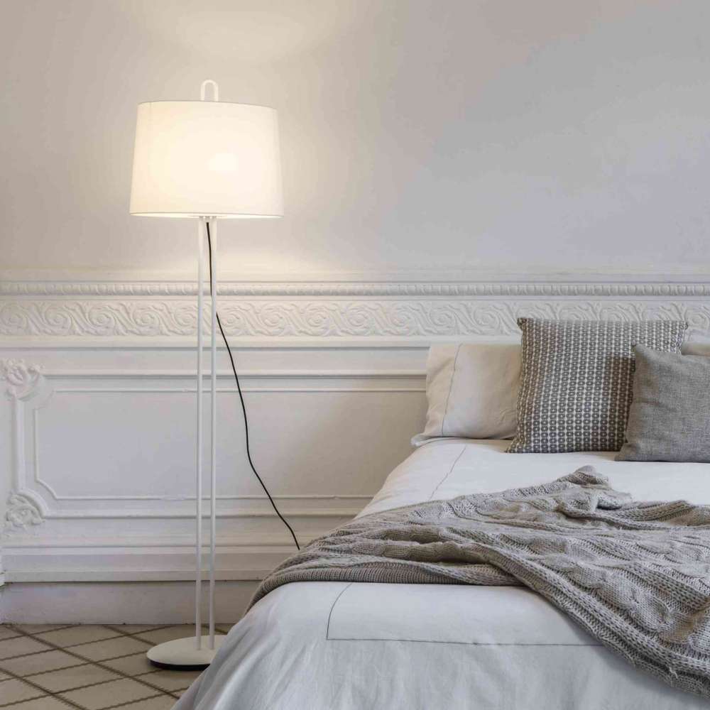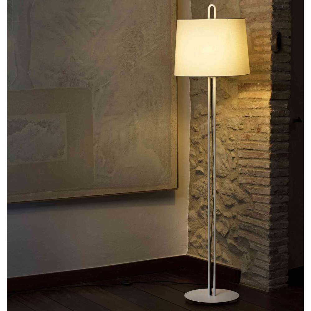 Ta biała (lub chromowana) lampa podłogowa jest przeznaczona do każdego rodzaju pomieszczenia.