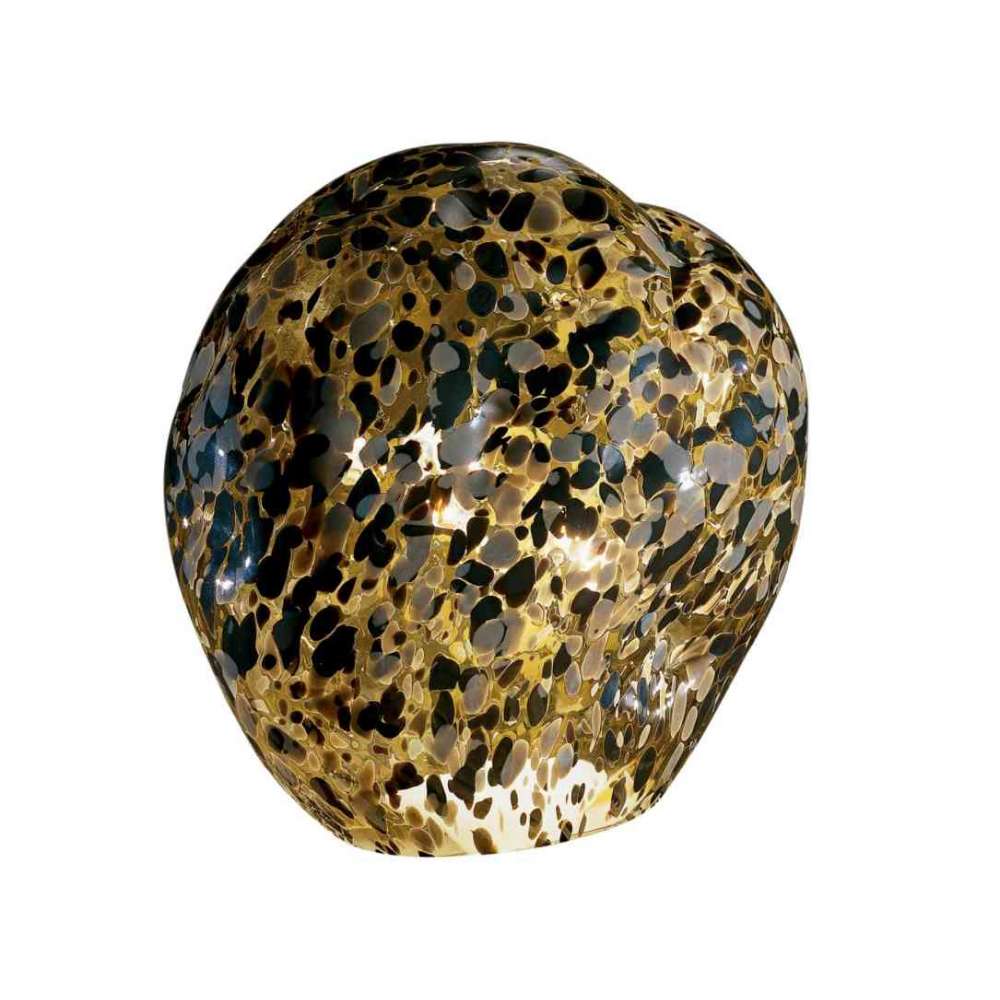 Sasso to lampa stołowa wykonana z dmuchanego szkła z dekoracjami i polerowanym metalem. Ciężkie jak skała, ale wykonane ze szkła: Sasso to kolorowa kreacja Mimmo Rotella w odcieniach słomkowej żółci, szarości i betonu. Kapryśna gra małych plamek koloru, zderzających się ze światłem i rzucających niezliczone fragmenty światła.