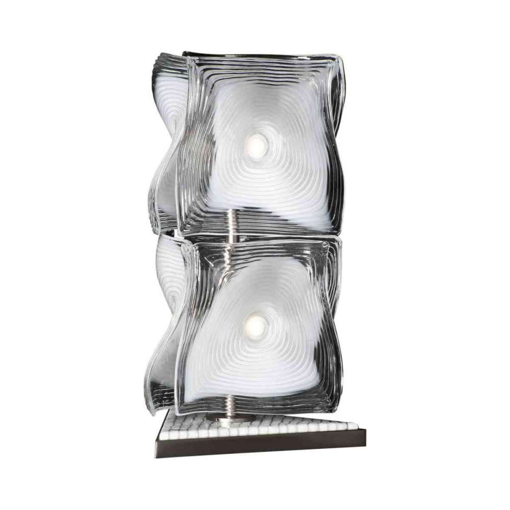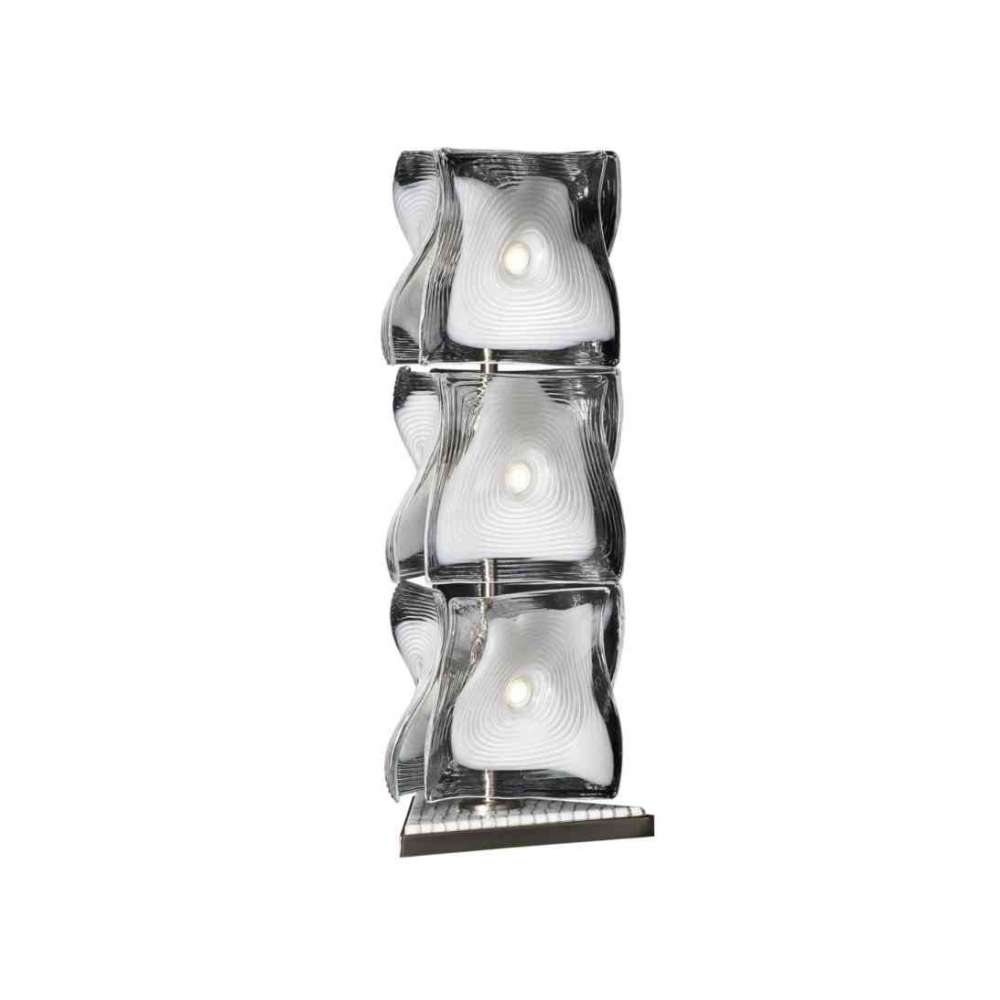 Veliero to lampa stołowa składająca się z 6 modułowych elementów: prostota pierwotnego kwadratu pozostaje niezmieniona, a została wzmocniona spotkaniem z innymi elementami, wyrażającymi się w nowej formie. Ta fala z duszą światła pozwala na kreatywne łączenie elementów, tworząc nieskończone możliwości. Veliero jest dostępne wyłącznie jako lampa podłogowa. Kolory : Kryształ / mlecznobiały Źródło światła : Kod.032.54 - 6 x max 1,2W LED 24V Kod.030.85 - 9 x max 1,2W LED 24V Edycje limitowane w 29 cyfrach arabskich + 5 cyfrach rzymskich „Prosty prostokąt Płaska figura jest nasycona geometrią sekwencji krzywych sinusoidalnych. Swobodnie zakrzywiony fragment powierzchni uzyskany z operacji geometrycznej jest odtwarzany przy użyciu szkła weneckiego. Ściśle rządzona geometria staje się „Fala z duszą”, która nabiera złożoności w odpowiedzi na światło. Jednak prostota pierwotnego kwadratu pozostaje niezmieniona. „Fala z duszą” pozwala na swobodne łączenie elementów, a nakładające się fale tworzą różnorodne produkty”. (Tadao Ando)Odbiorca: :