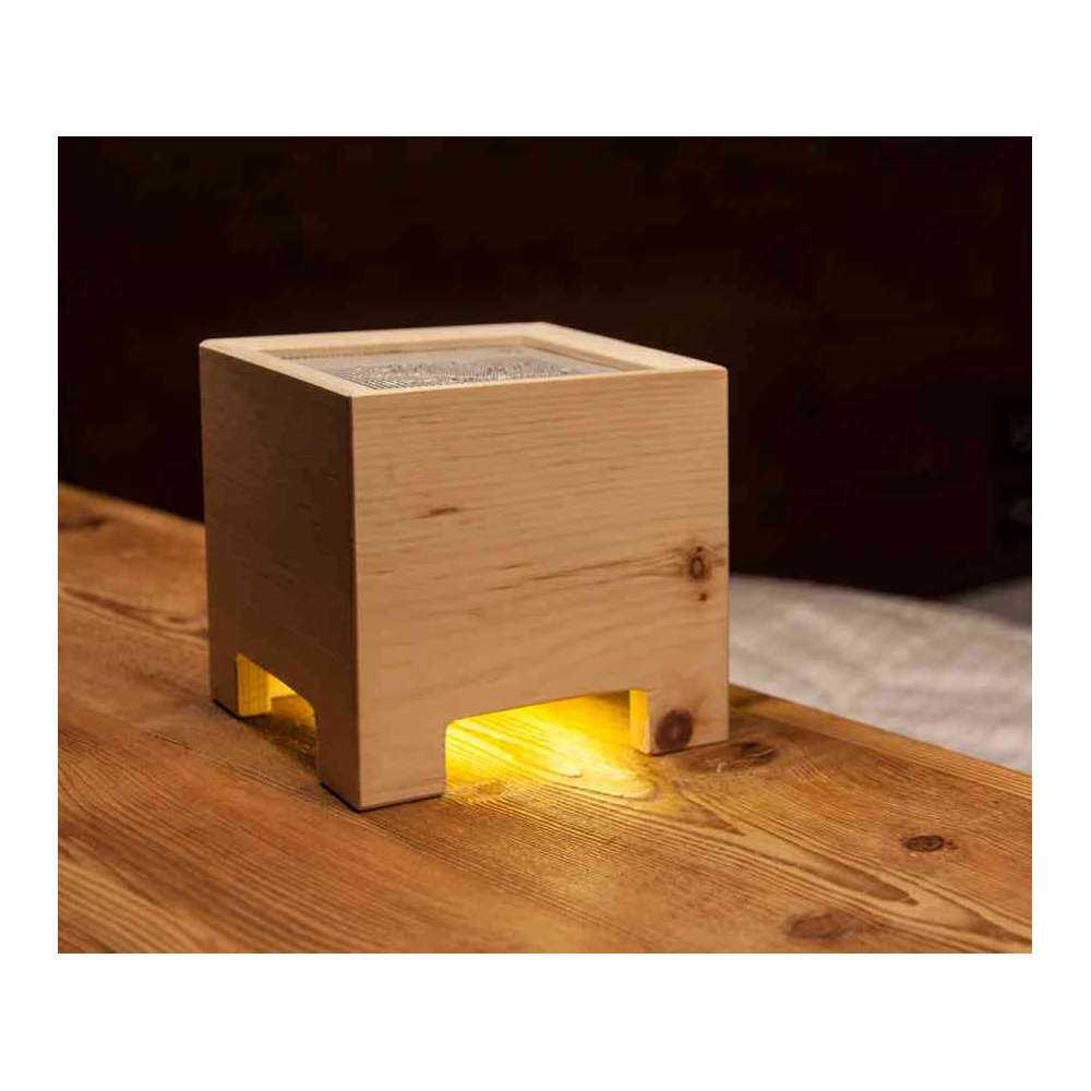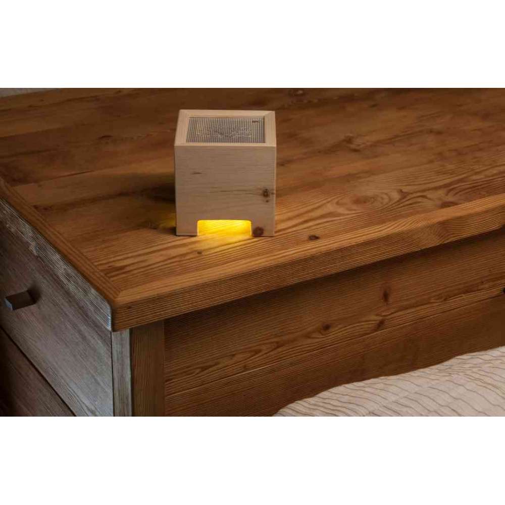 Oczyszczacz powietrza Ion jest wyposażony w podwójne źródło światła LED zaprojektowane tak, aby tworzyć ciepłe i relaksujące efekty dekoracyjne. Zbudowana z drewna Cirmolo, drzewa rosnącego na dużych wysokościach w naszych pięknych Dolomitach, lampa ta, dzięki trwałemu balsamicznemu zapachowi, daje przyjemne poczucie lekkości i spokoju.
