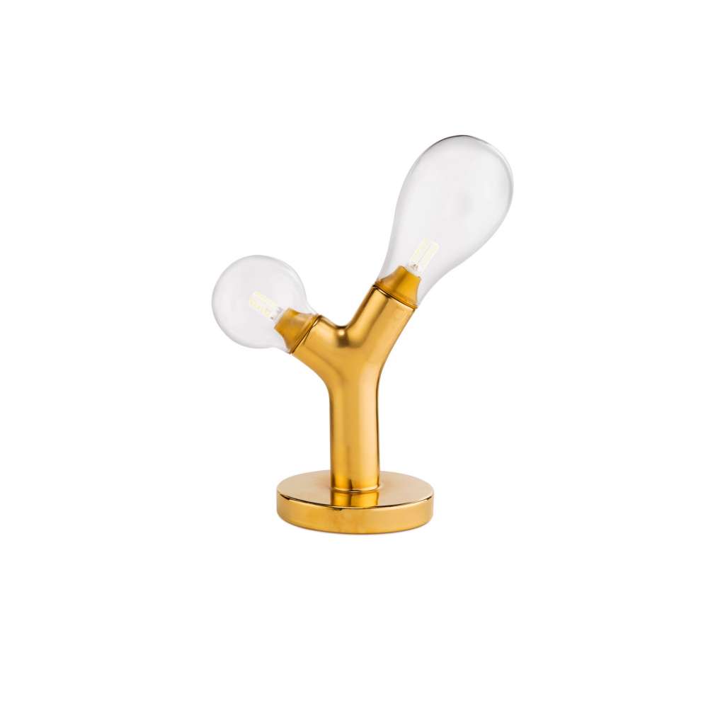 Lampa stołowa z dwiema żarówkami to lampa stołowa o delikatnym kształcie. Wytwarzanie szkła na Murano wywodzi się z Rzymu z VIII wieku, ze znaczącymi wpływami azjatyckimi i islamskimi, ponieważ Wenecja była głównym portem handlowym. Murano, niecałe 2 km od serca Wenecji, z bliska przygląda się kulturze i sztuce na przestrzeni wieków. Przez wieki Murano z wielką dumą zachowywało sztukę wytwarzania szkła, do tego stopnia, że w starożytnej Serenissimie Republiki Weneckiej nikomu nie pozwolono opuścić wyspy Murano bez oficjalnej zgody. Chociaż jego tradycja była przekazywana z pokolenia na pokolenie przez wieki, od Mistrza do „garzonetta”, z ojca na syna, historia obróbki szkła weneckiego ewoluowała w sposób, który nadal szanuje prawdziwe tradycje i integralne zwyczaje tego kraju. i jej historię. Pewnego lata Matteo Cibic wraz z duetem założycielskim Scarlet Splendour podróżował po najbardziej poruszających częściach Włoch, gdzie rozpoczęła się pierwsza manifestacja kolekcji Luce Naga. Od początku XV wieku Włochy były ogromnym katalizatorem w niesieniu światu pięknej ceramiki. Podczas ich dni spędzonych w regionie Vicenza, który do dziś jest odpowiedzialny za produkcję niektórych z najbardziej znaczących wyrobów ceramicznych, znalazła się pierwsza nuta do tej pięknej wężowej pieśni, która tak uderzająco pojawia się w postaci nieograniczonych ruchów i melodii, w kolekcji . Co więcej, udoskonalenie procesu galwanizacji 24-karatowego złota na ceramicznym korpusie nie pozwalało zasnąć zespołowi przez wiele nocy, aż do osiągnięcia bezkompromisowego celu. W końcu kolekcja została uzupełniona o istotny element Luce, który prześwituje jedyne w swoim rodzaju ręcznie dmuchane szklane żarówki Murano, wykonane między wodą a ogniem. Każdy cal tej kolekcji jest wykonany ręcznie we Włoszech, łącząc niektóre z najbardziej uznanych sztuk i kultury Włoch, jako jeden ponadczasowy kawałek współczesnej (zachowanej) historii, uzupełniony niemal dekadenckim luksusem Luce Naga - Skrętne ceramiczne złote światła oddają płynność ruchu węża w szlachetnej ceramice. Światła są dramatyczne, nigdy subtelne, ale klasyczne w swojej formie i wykonane we Włoszech. Matteo Cibic osiąga zadziwiającą mieszankę zabawy i luksusu, które są zwieńczone ręcznie dmuchanymi, niemal dziwacznymi osłonami nad wysokiej jakości żarówkami LED.Odbiorca: :