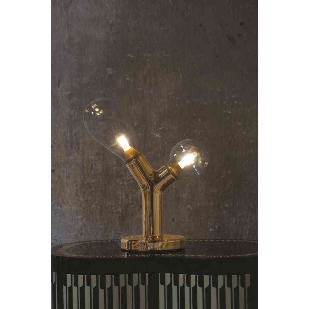 Lampa stołowa z dwiema żarówkami to lampa stołowa o delikatnym kształcie.