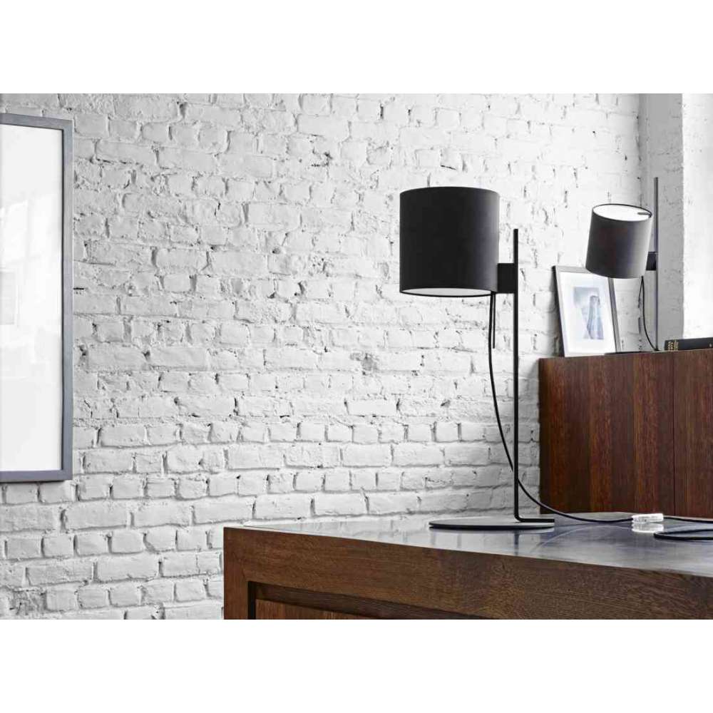 Magnet Lamp to lampa stołowa o konstrukcji z fakturowanej satynowej białej lub czarnej lakierowanej stali. Cylindryczny biały lub czarny bawełniany klosz z białym dyfuzorem z PMMA, które razem tworzą przyjemną atmosferę świetlną. Klosz jest namagnesowany, dzięki czemu można go swobodnie ustawić na żądanej wysokości, a uchwyt umożliwia ustawienie go pod dowolnym kątem. Szary lub czarny kabel tekstylny z ręcznym ściemniaczem. W zestawie 1 x 57W E27 standardowa (klasyczna) żarówka halogenowa eco (odpowiednik 75 W).