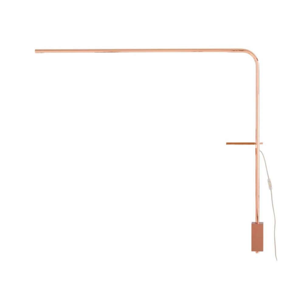 Lekka z miedzianą rurką Ø 20 mm i odlewaną metalową przeciwwagą (H 13,5 x 6 x 6 cm) wykończoną ryflowanym lakierem epoksydowo-miedzianym. Wspornik wspornika pokryty jest naturalną skórą. Ta lampa jest wyposażona w taśmę LED o długości 90 cm dającą łączną moc 13 W i emitującą 970 lumenów lub odpowiednik żarówki 75 W. Temperatura barwowa 3200 K (ciepła biel). Przezroczysty kabel PVC i przełącznik ręczny. Wtyczkowy sterownik LED dostarczany z wymiennymi wtyczkami (Euro, UK, US). Ta sama wersja jest zasilana zarówno napięciem 220 V, jak i 110 V.