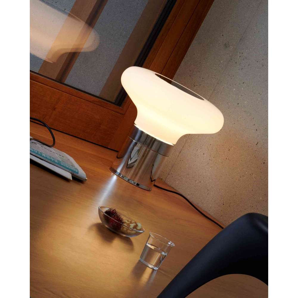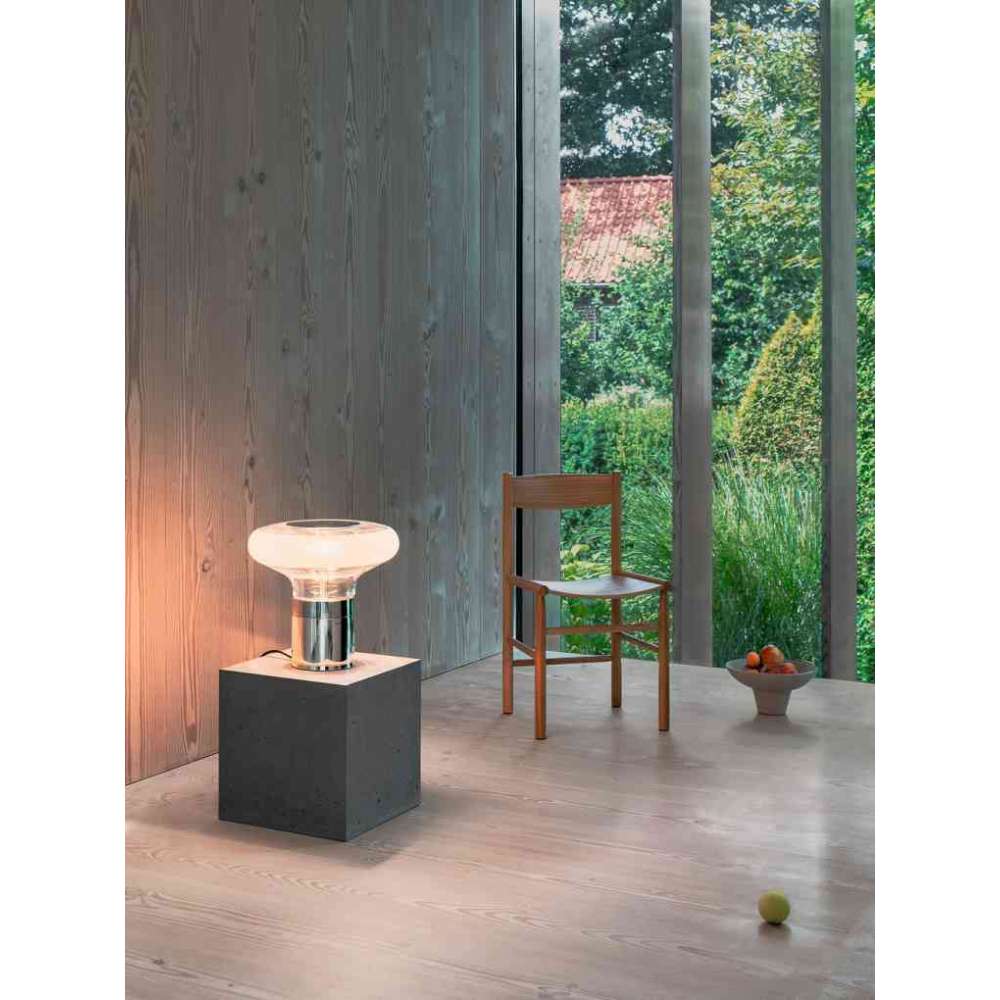Niezawodna lampa stołowa FIVE stanowi współczesny akcent na klasycznej żarówce. Ponad cylindryczną metalową podstawą dmuchany szklany klosz emituje piękne, ciepłe światło, które można łatwo regulować za pomocą wbudowanego ściemniacza. Oprawę FIVE można połączyć z oprawą sufitową PLANET FIVE, aby oświetlić pomieszczenie.