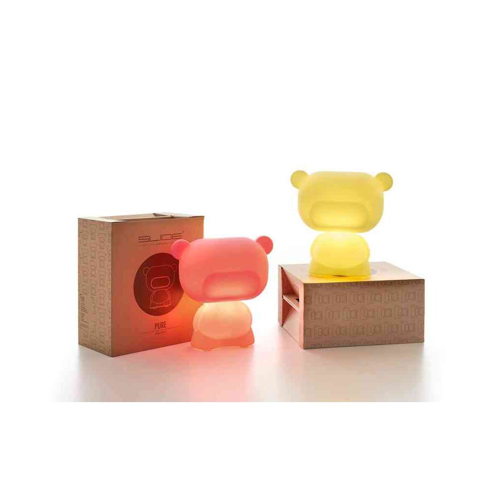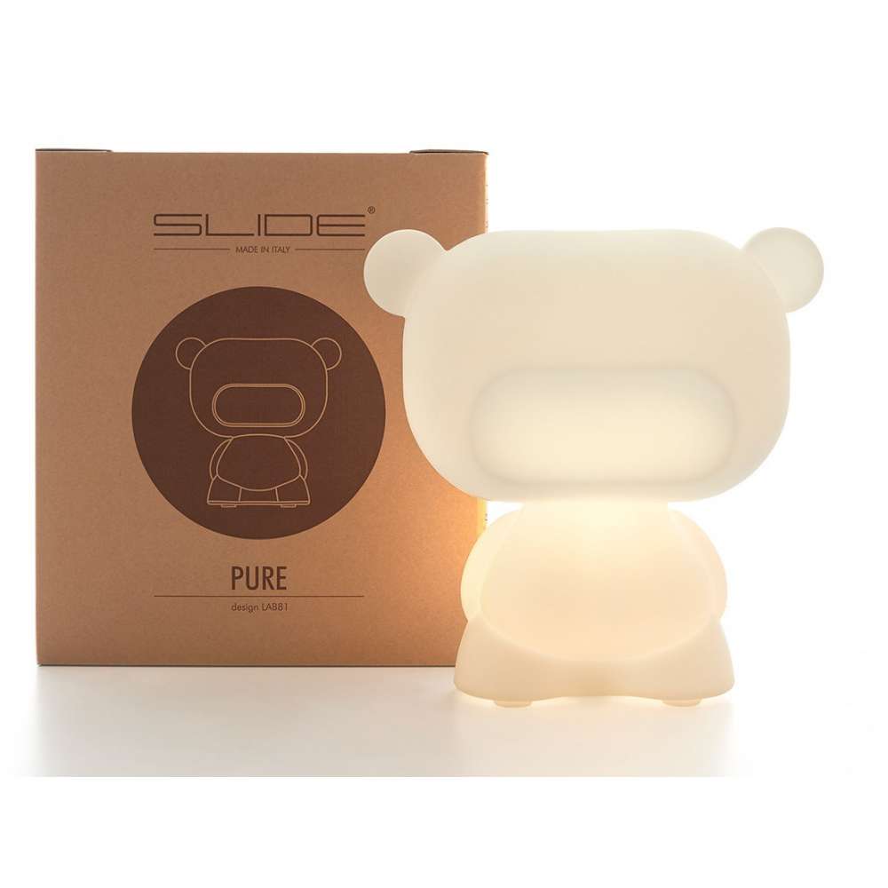 Pure jest bestsellerem całej produkcji Slide i dzięki swojej czułości i sympatii sprawia, że wszyscy się zakochają. Pure to lampa stołowa o kształcie misia, zaprojektowana przez Lab81. Projektanci czerpią inspirację z zasad Toy Movement, gałęzi designu znanej na całym świecie. Zabawna lampa stołowa Pure wykonana jest z polietylenu w technologii formowania rotacyjnego. Pure to kolorowy i zabawny produkt idealny dla dorosłych i dzieci.