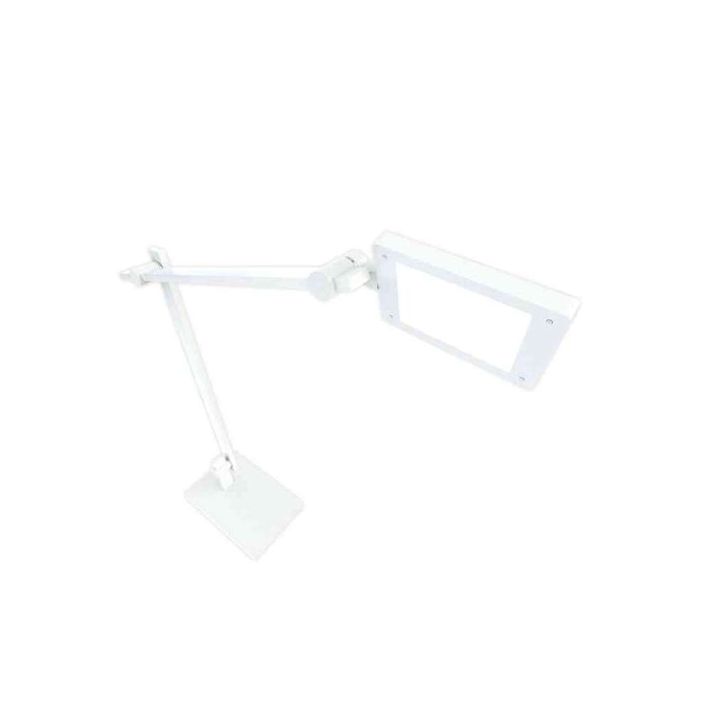 SCALE to lampa stołowa LED z dużą regulacją. Jego ramię ma trzy złącza, a na końcu jest jedno obrotowe złącze dla panelu świetlnego. W ten sposób SKALA może skalować się do 1m i osiągać 90cm. Jego stałe światło LED można ustawić na trzech poziomach mocy za pomocą przycisku zasilania. SKALA jest dostępna w kolorze czarnym metalowym lub matowo-białym.
