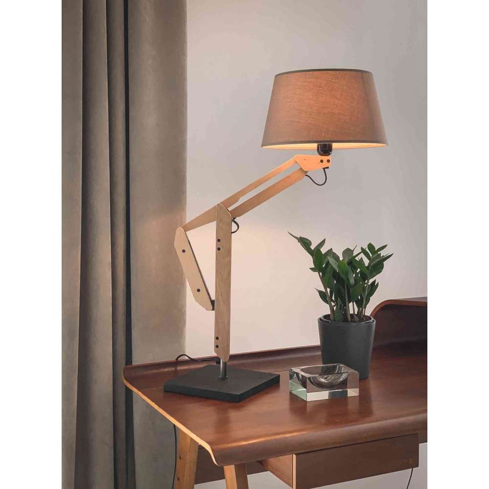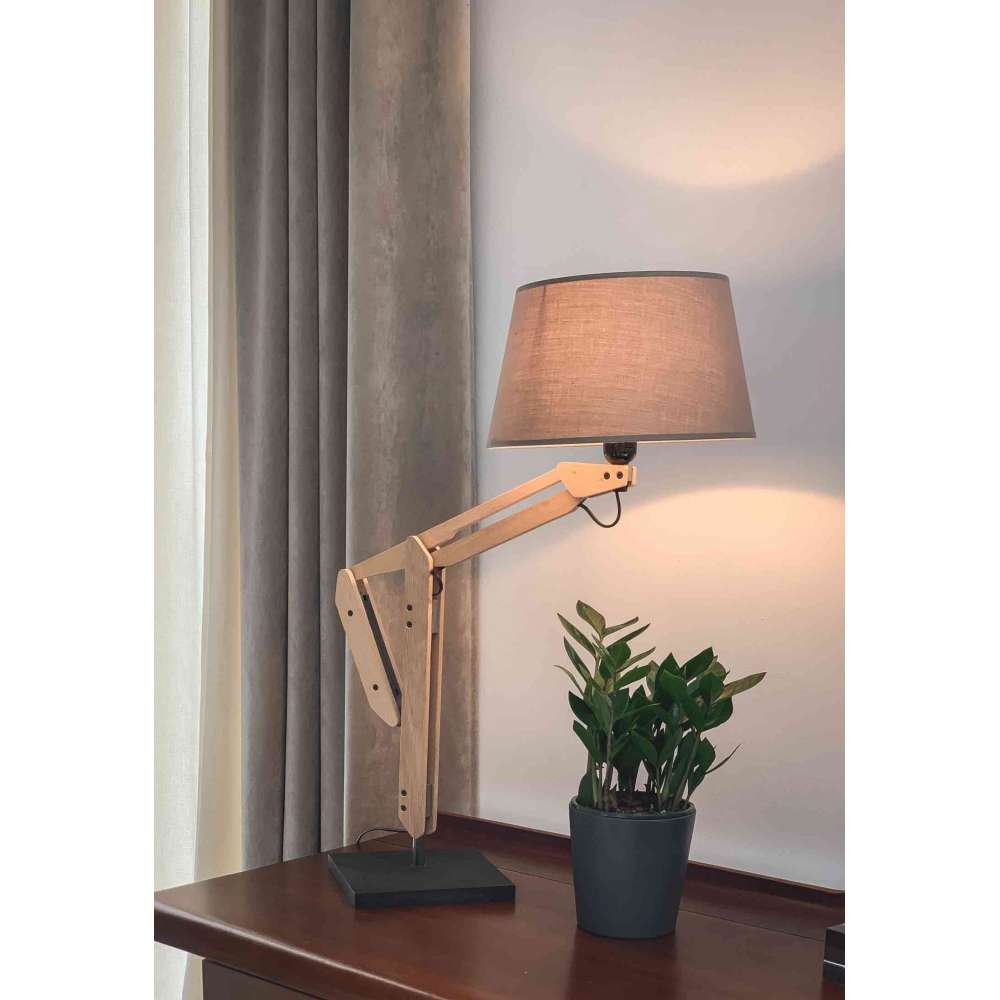 Drewniana lampa stołowa z ramieniem wahadłowym