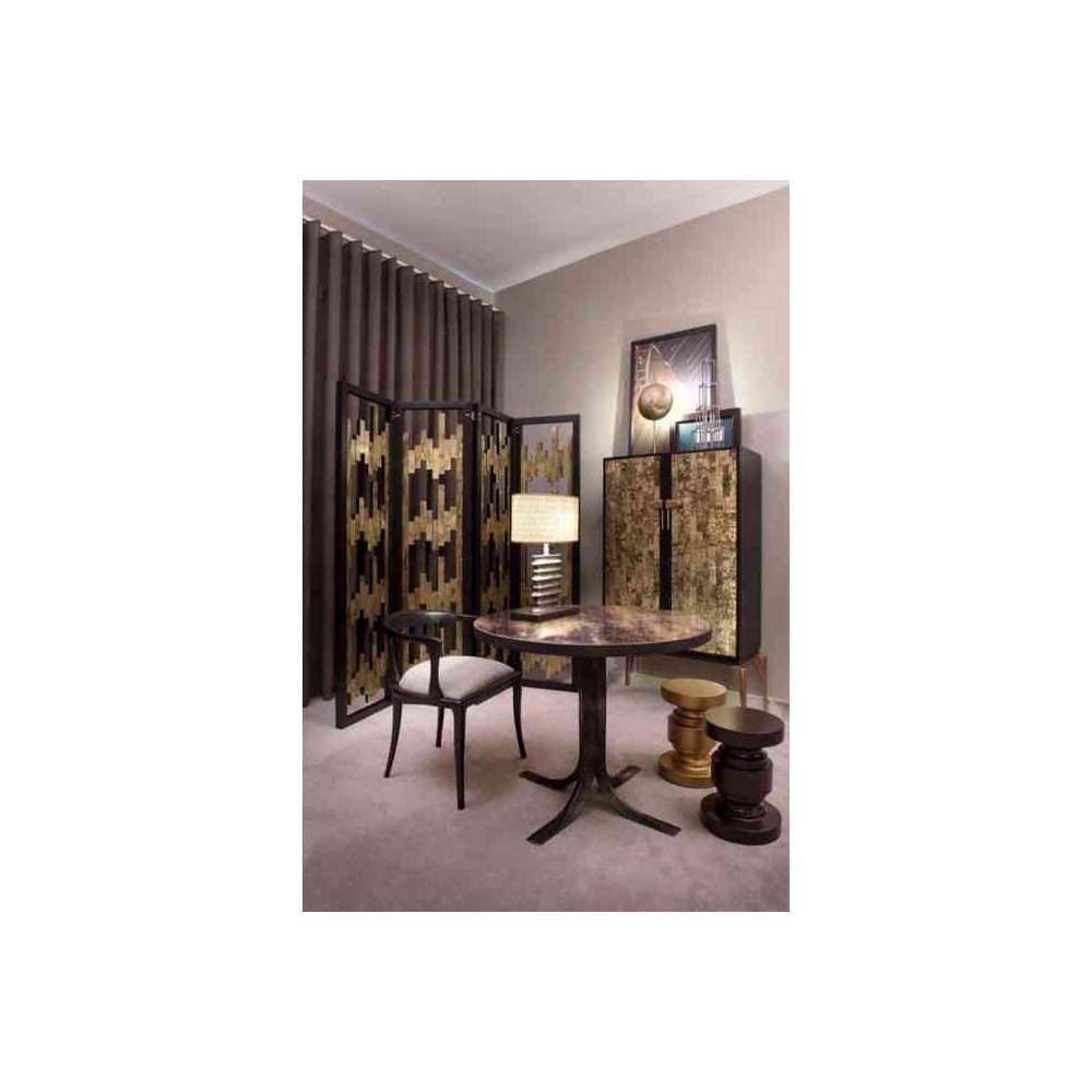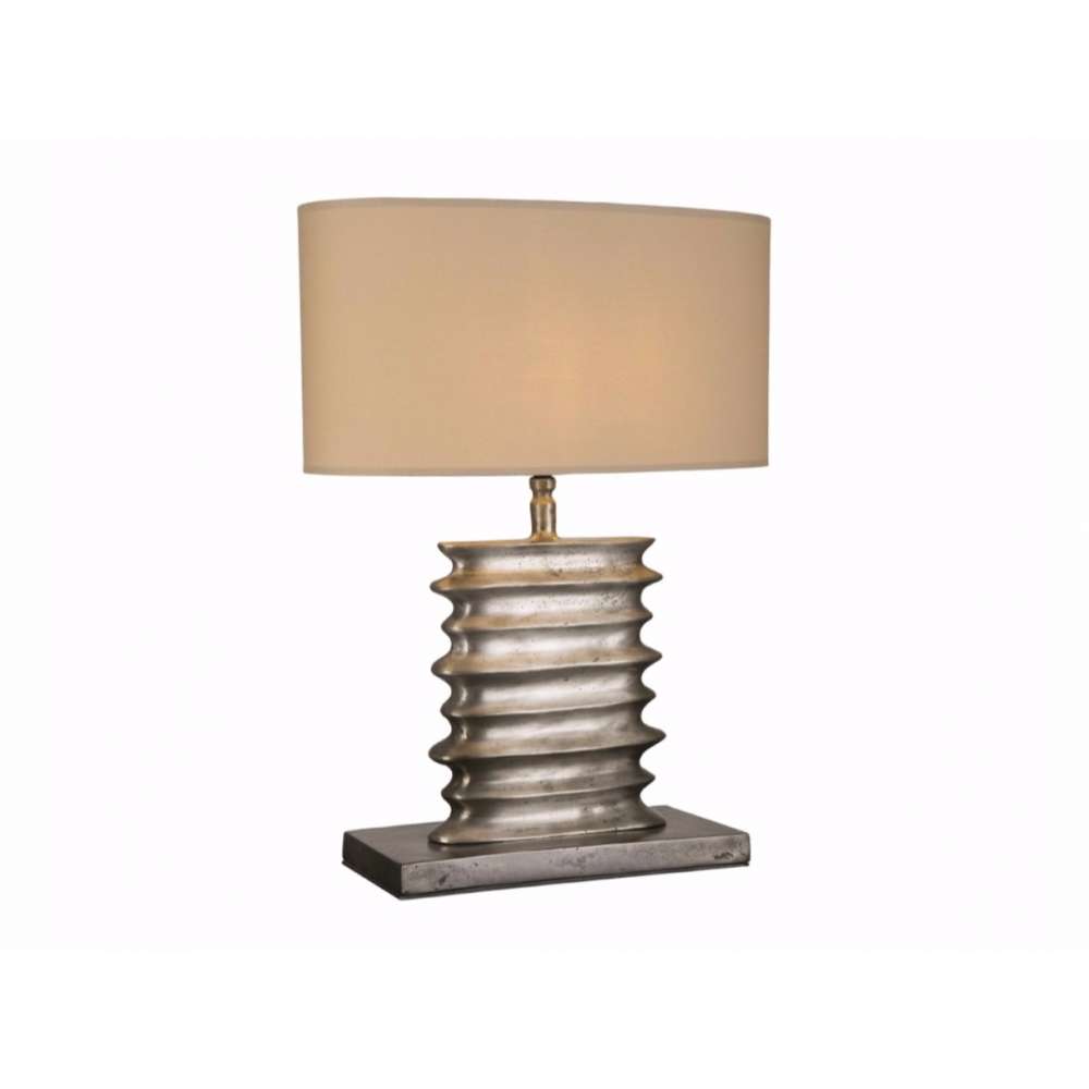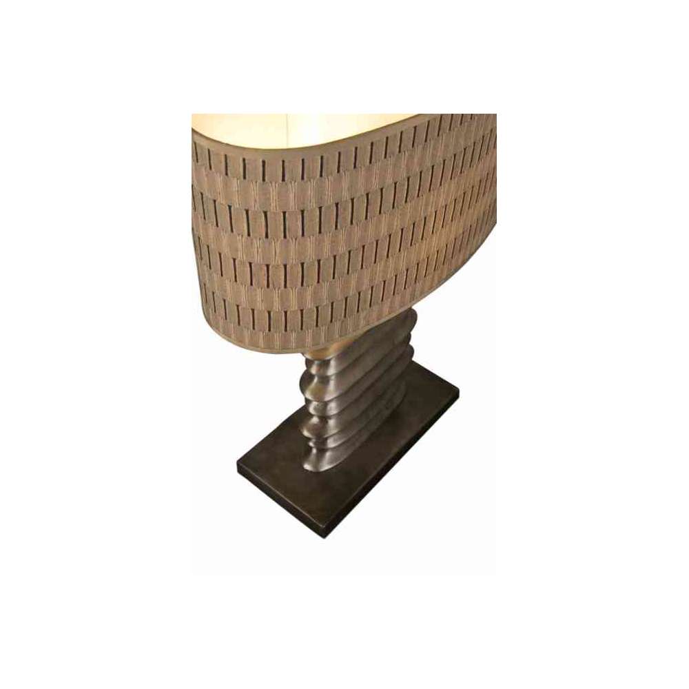 Lampa stołowa z wypalanego aluminium na żarówkę E27 (brak w zestawie), z możliwością wyboru klosza w splocie Beige lub Romul.