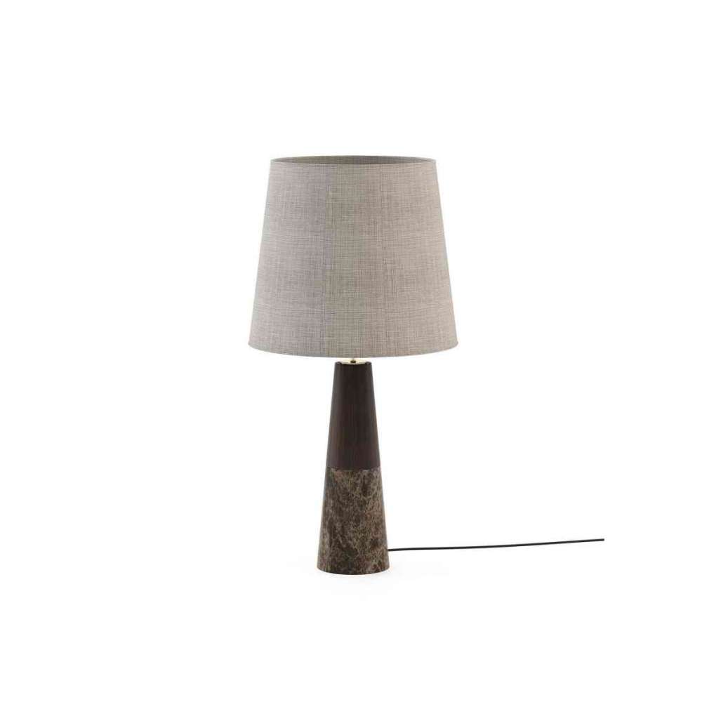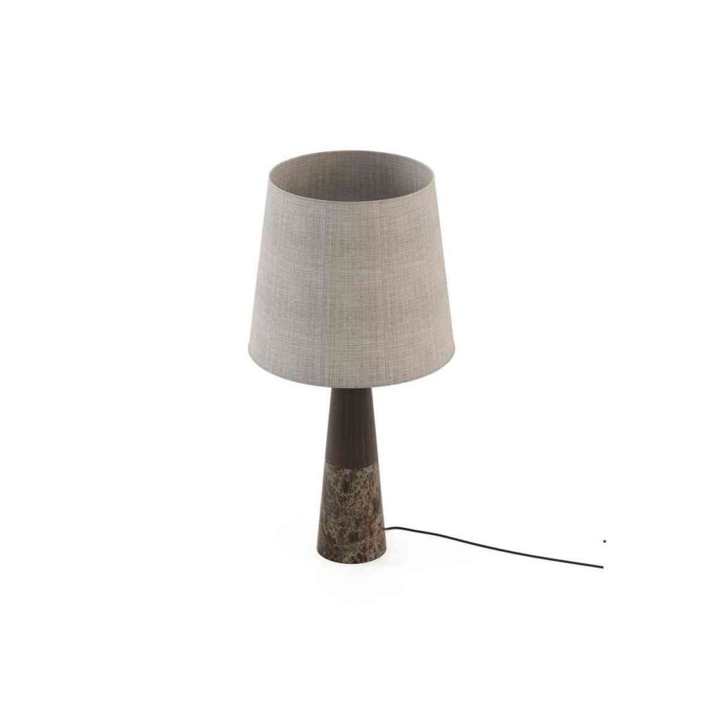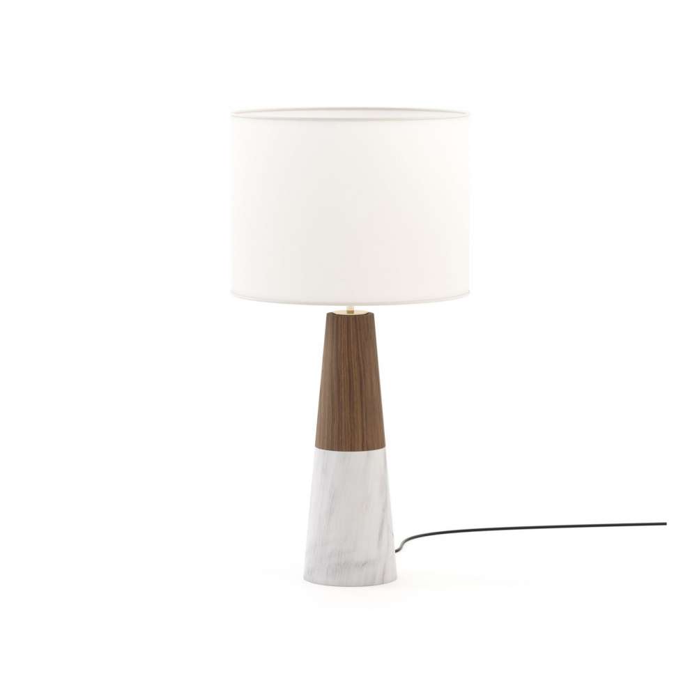 Prostota lampy stołowej Jude kontrastuje z wieloma kształtami i funkcjami tej lampy biurkowej. Ten projekt oświetlenia łączy w sobie to, co najlepsze w rzemiośle Laskasa i przenosi elegancję klasyki. Wykonana ręcznie z marmuru i drewna, z metalowymi detalami, w ciepłych kolorach, jest to idealna dekoracyjna lampa stołowa do nowoczesnych biur domowych. Podstawa o stożkowym kształcie bawi się wymiarami dzięki swojej strukturze i zastosowaniu różnych materiałów i wykończeń.