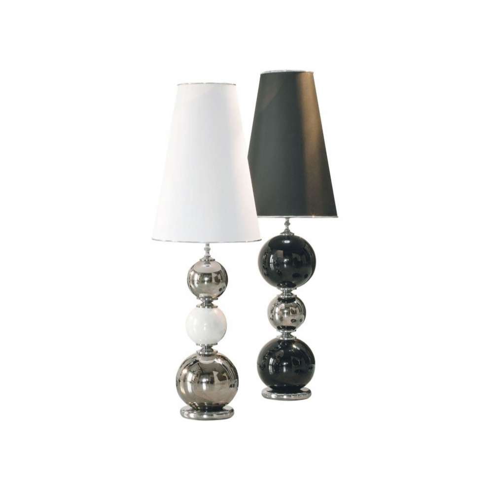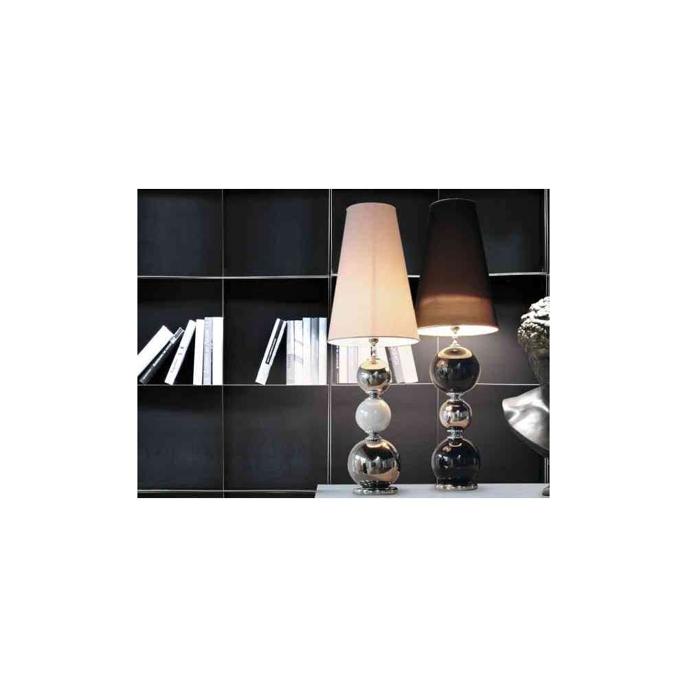 Lampa stołowa z tekstylnym kloszem stożkowym białym lub czarnym i ceramiczną podstawą przeszkloną biało/platynowa lub czarno/platynowa. Światło 1xE27-52 W HES Wszystkie lampy posiadają certyfikat CE. Tylko do użytku w pomieszczeniach.Odbiorca: :