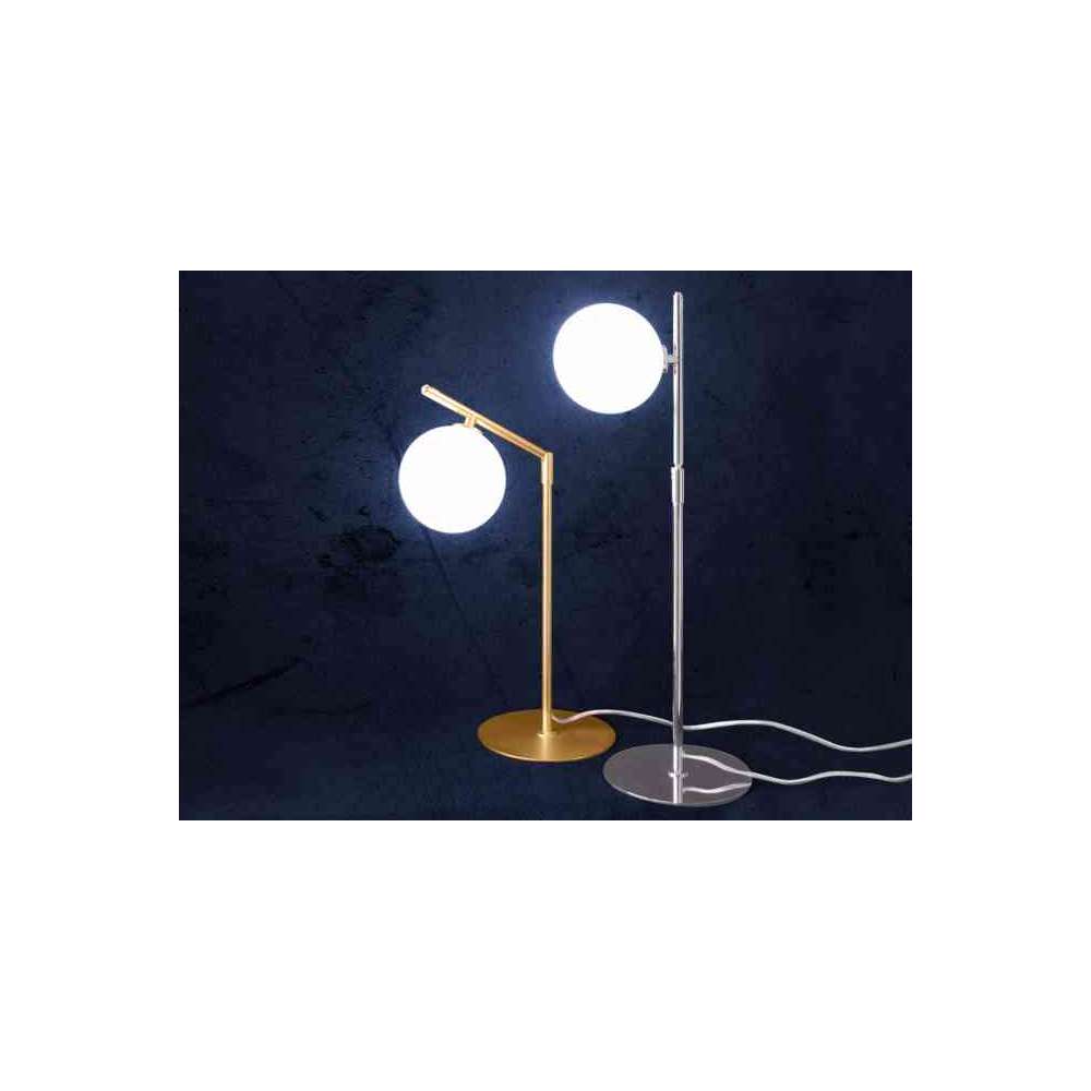 Lampa stołowa z regulowaną chromowaną metalową lub lśniącą złotą strukturą. Szklany klosz w kolorze białym. Światło 1xMax 33W 220-240V-50Hz. Stół Dada chromowany metal lub złoto. Wszystkie lampy posiadają certyfikat CE. Tylko do użytku w pomieszczeniach.Odbiorca: :
