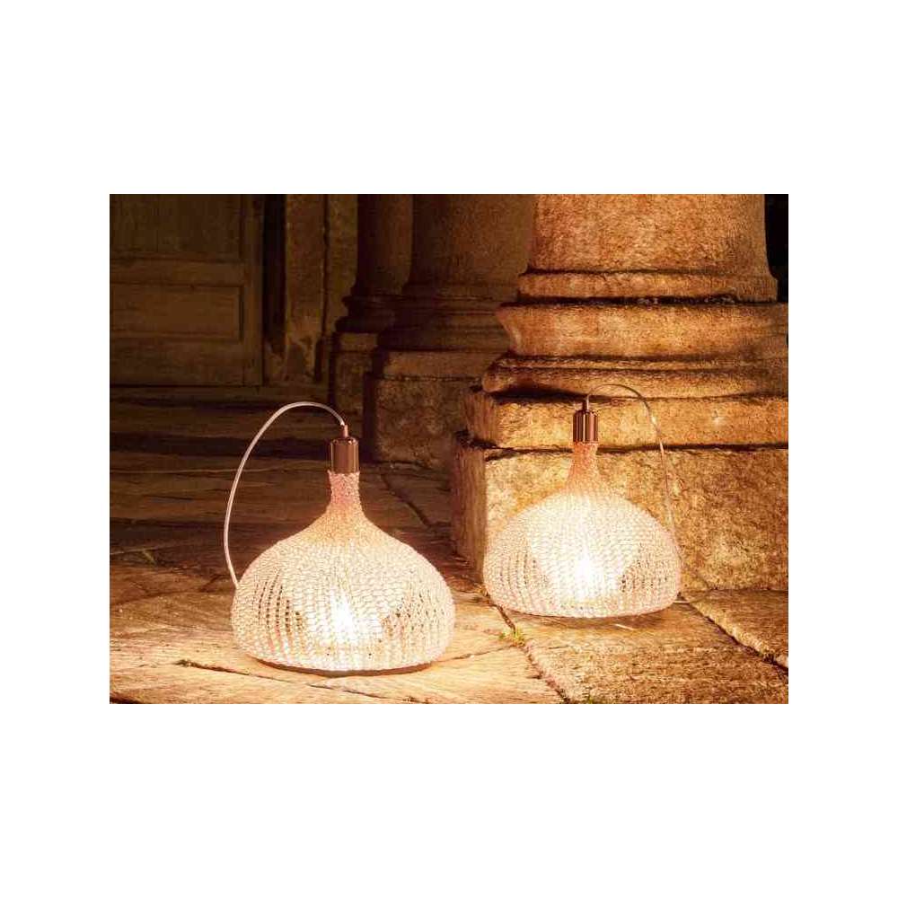 Swoją nazwę Luce zawdzięcza fascynującemu zjawisku zmysłowemu, niemal duchowemu, łączącemu człowieka z otoczeniem. Lampa ta powstaje poprzez tkanie gołymi rękami nici przewodzącej , przenosząc w ten sposób ideę bezpośrednio na formę w nierozerwalnej syntezie struktury i dekoracji. Linie cienia generowane przez światło Luce rozpraszają się na powierzchniach i przedmiotach, łącząc je ze sobą w taki sposób, że mogą swobodnie unosić się w oświetlonym otoczeniu w nowy sposób, zarówno sugestywne i ekscytujące. Obudowa lampy stołowej z włącznikiem/wyłącznikiem na kablu. LT.1002/34/RR - Czerwona miedź. LT.1002/34/ST - Ocynowana. E14 max 40 W - 230 V (brak w zestawie) KLASA ENERGETYCZNA OD E DO A++Odbiorca: :