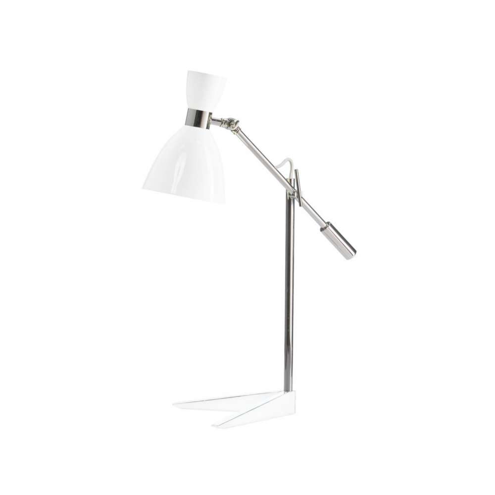 Charlie to ręcznie robiona mosiężna lampa stołowa. Źródło światła: 1xE27 Max 40W, klasa II. Zainspirowana przez wielkiego amerykańskiego saksofonistę jazzowego i kompozytora Charlesa Parkera. ta minimalistyczna lampa łączy szlachetne metale w designie, który nawiązuje do trendu vintage lat 50. i 60. Z białym lakierowanym mieszkiem, ma styl retro i niklowane wykończenie, które tworzy wyrafinowany kawałek. Posiada regulowane daszki, które pozwalają skierować oświetlenie dokładnie tam, gdzie jest potrzebne.Odbiorca: :