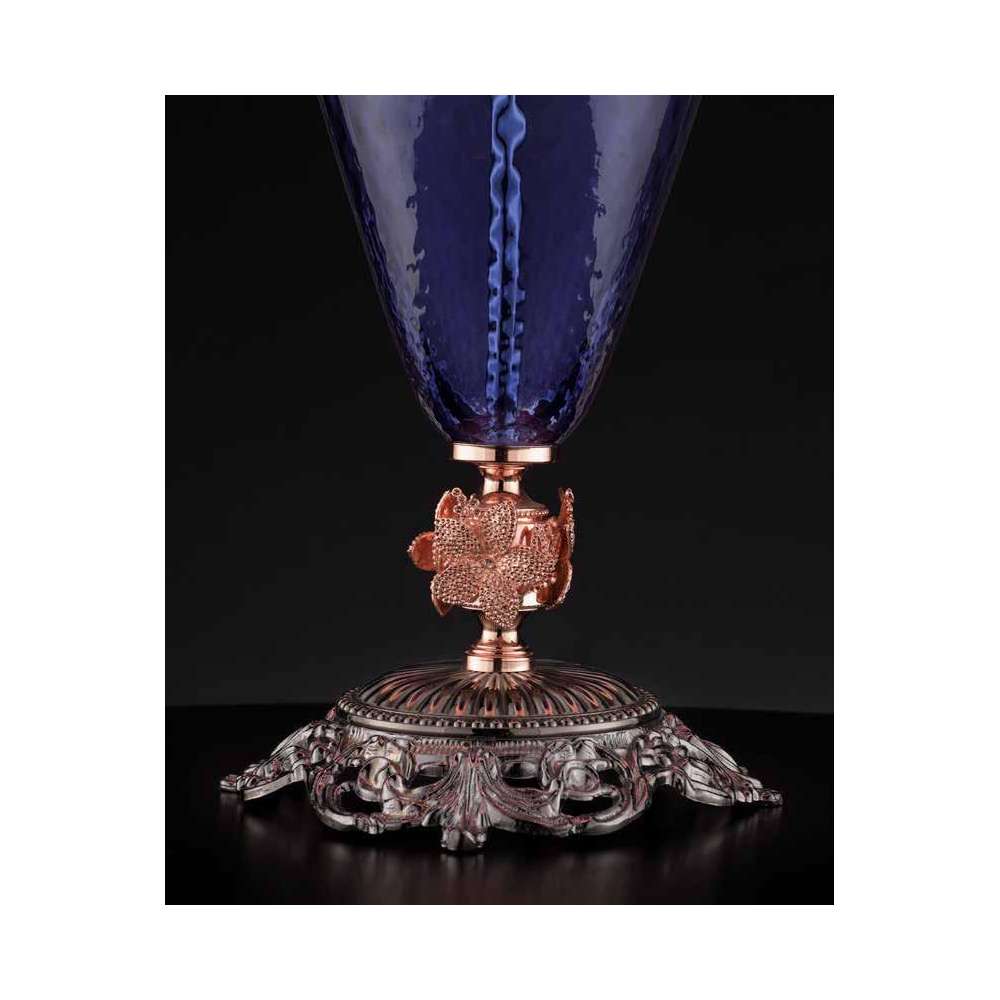 Szczegóły: centralny korpus z ręcznie dmuchanego szkła wyprodukowany w Toskanii. Elementy mosiężne. Zdobiony metalowymi elementami kwiatowymi ze srebrnymi spawami.