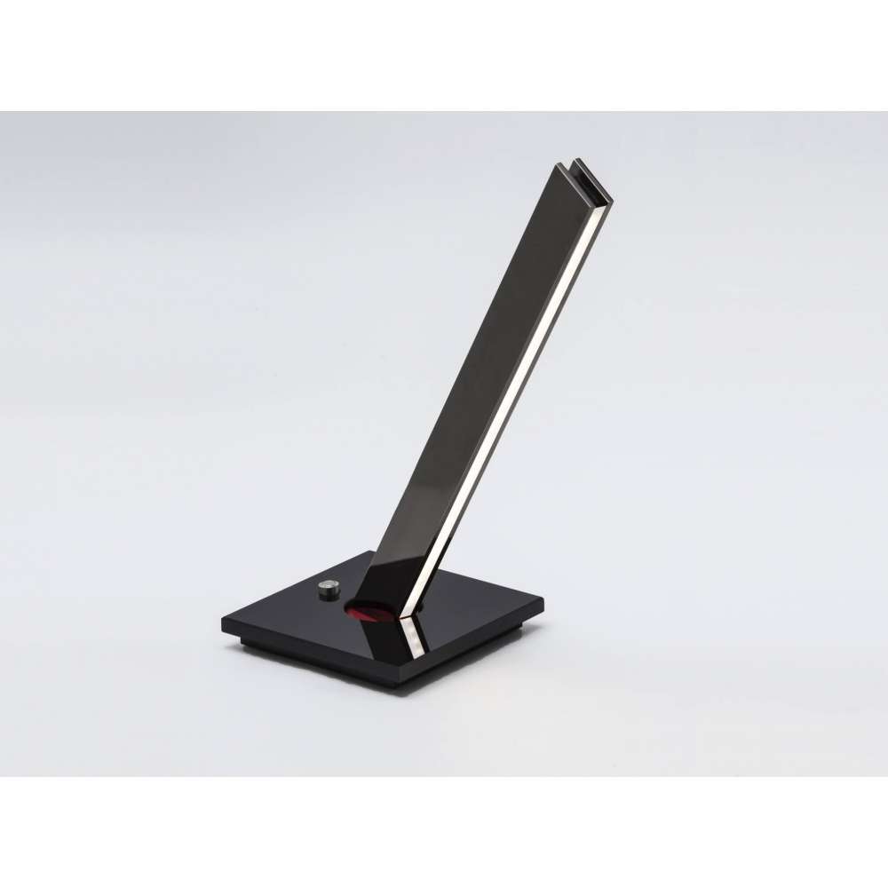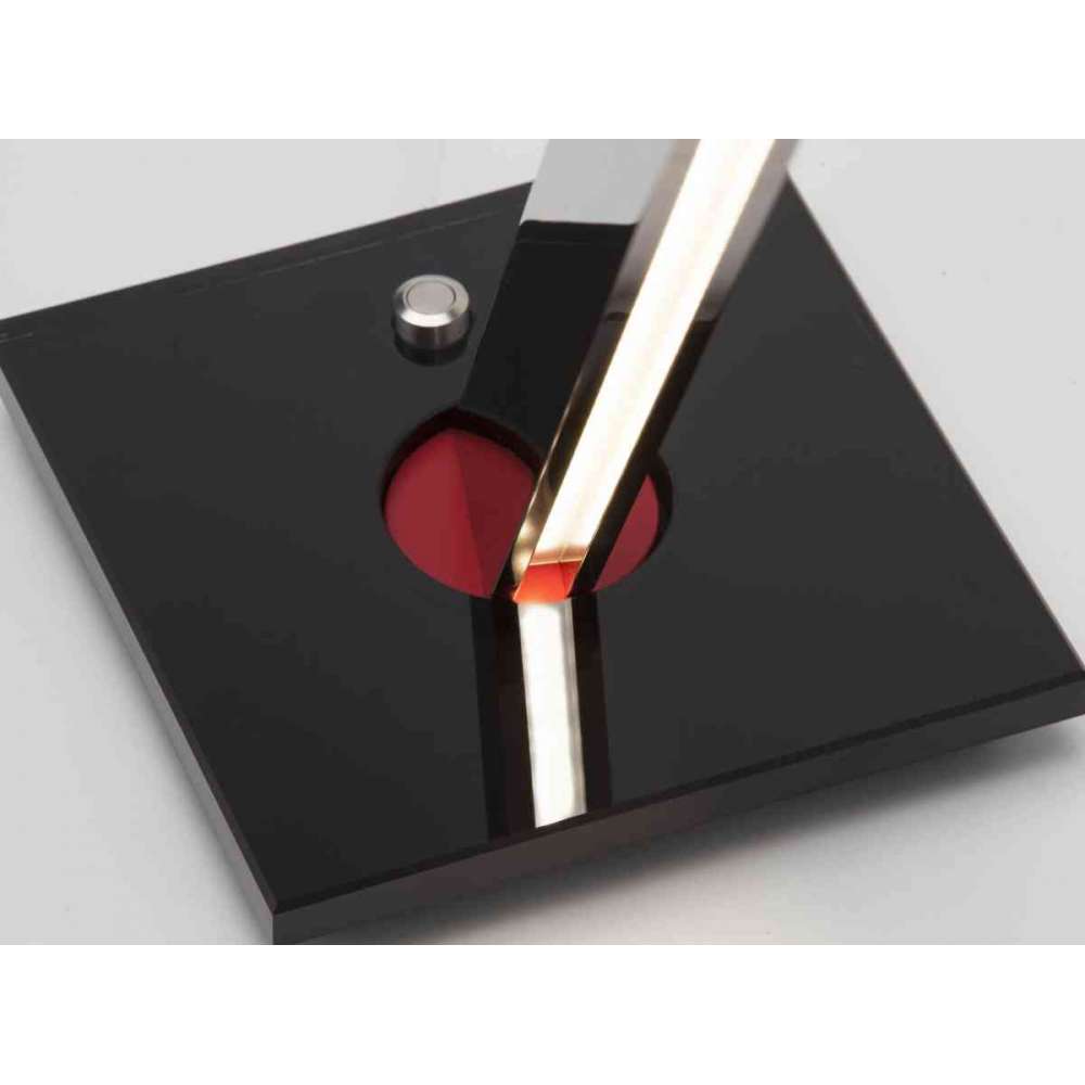 Wykończenie: czarny błyszczący chrom obrotowy pręt z wykończeniami pomalowanymi na czerwono, podstawa wykonana z czarnego szkła.