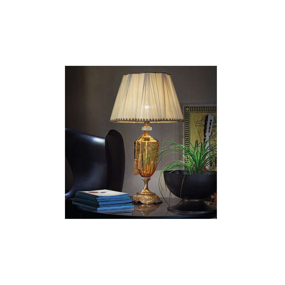 Wykończenie : folia złota - folia srebrna. Inne wykończenie na zamówienie. Kolory : bursztynowy. Inne kolory na zamówienie. Szczególny : kryształowy korpus centralny wykonany w Toskanii. Zdobiony srebrną aplikacją Swarovski®. Okrągły element dekoracyjny wykonany ręcznie 24K i kamieniami. Odcień 34 /47 mod. Margherita z tkaniną pongè i plissè voileOdbiorca: :