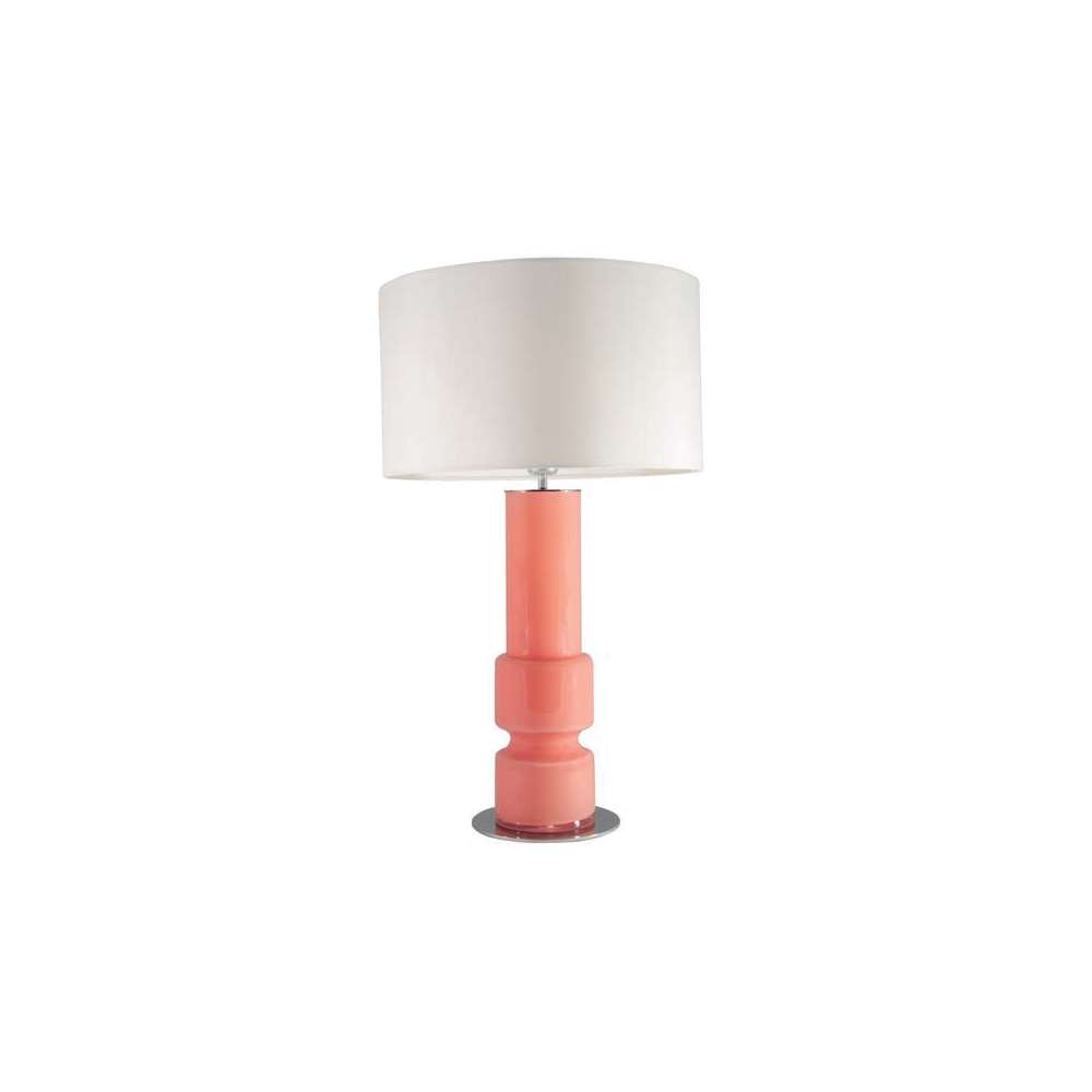 Szklana lampa stołowa lakierowana na różne kolory. Części metalowe w chromie lub złocie. Oprawka E27. Nie zawiera żarówki i klosza. Zalecany odcień: 801011/41.