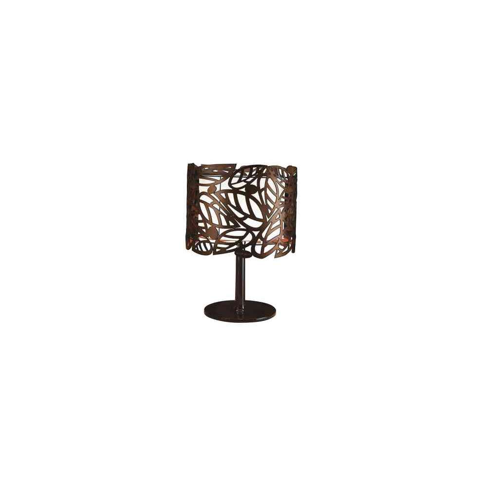 Lampa stołowa Leaf z glazurowanej ceramiki ze skórzanym kloszem wycinanym laserowo. Dostępna w kolorze kości słoniowej, brązowej i czarnej skóry.