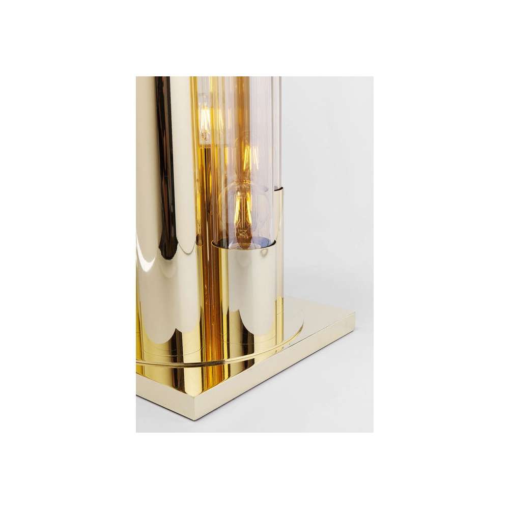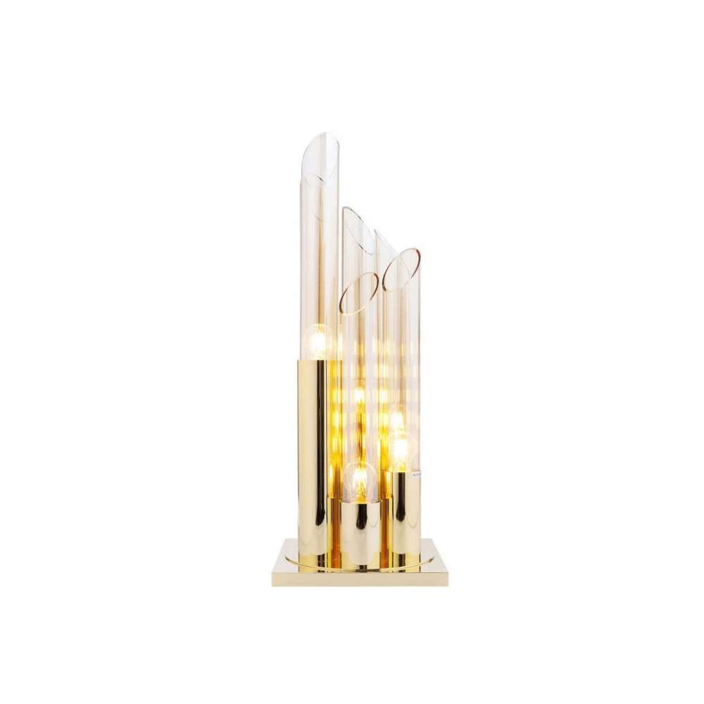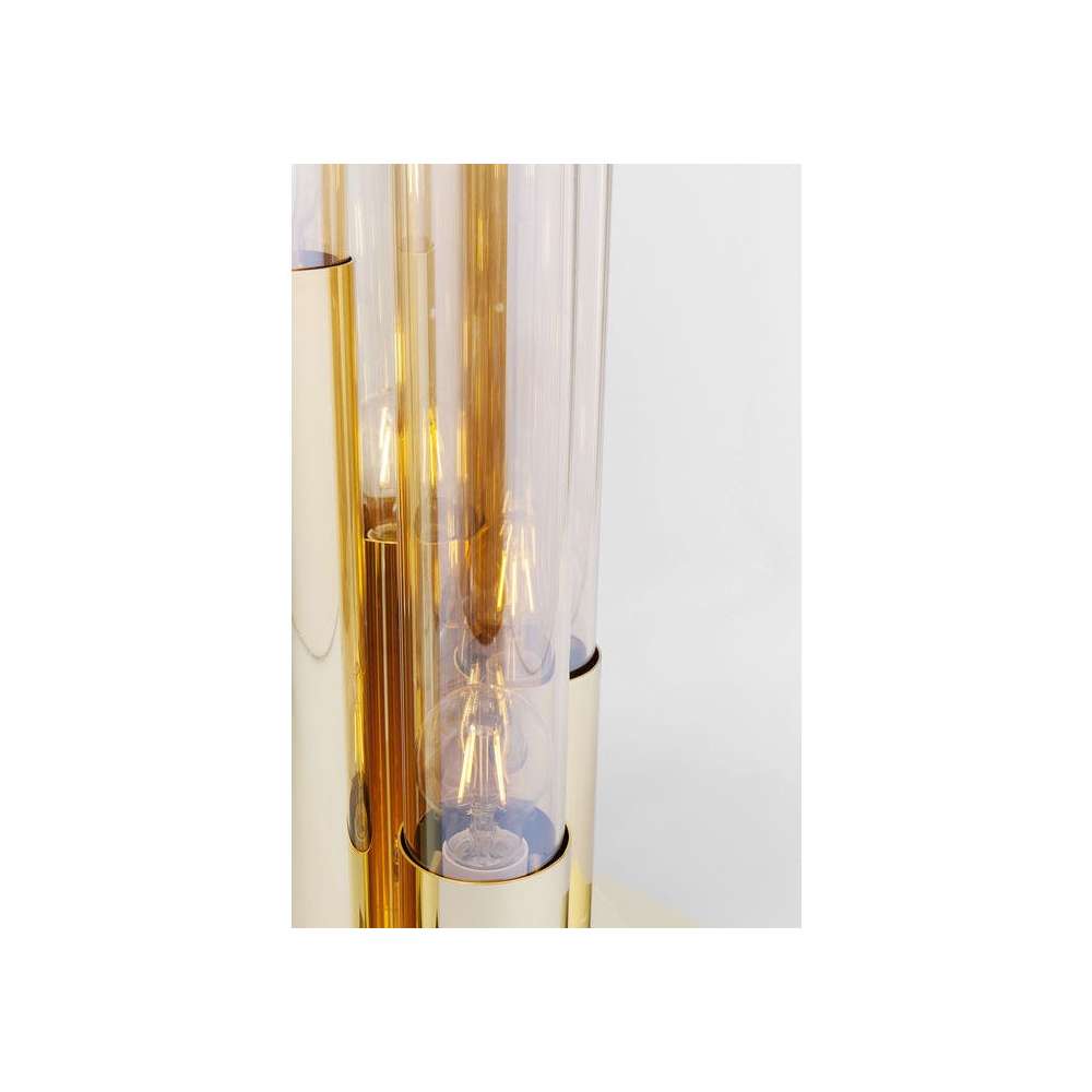 Wiązka światła. Sześć migoczących rurek lampy Pipe jest wykonanych ze złotej stali nierdzewnej i kolorowego szkła - i emanuje delikatnym, przyjemnym światłem. Szczególnie elegancka na kredensie lub na parapecie. Dostępna również jako lampa standardowa.