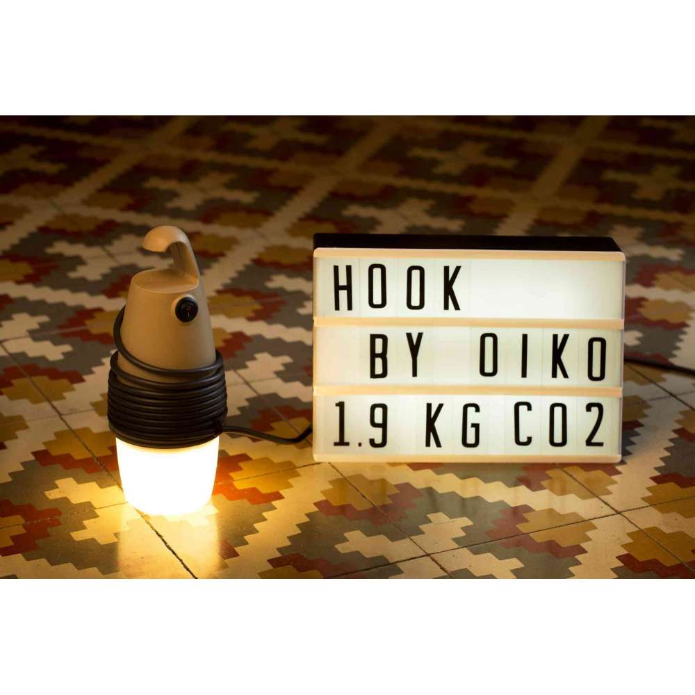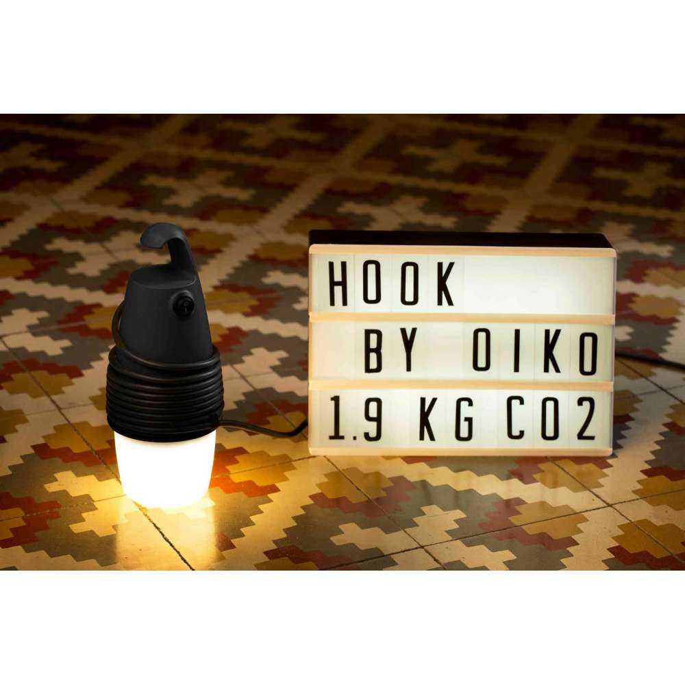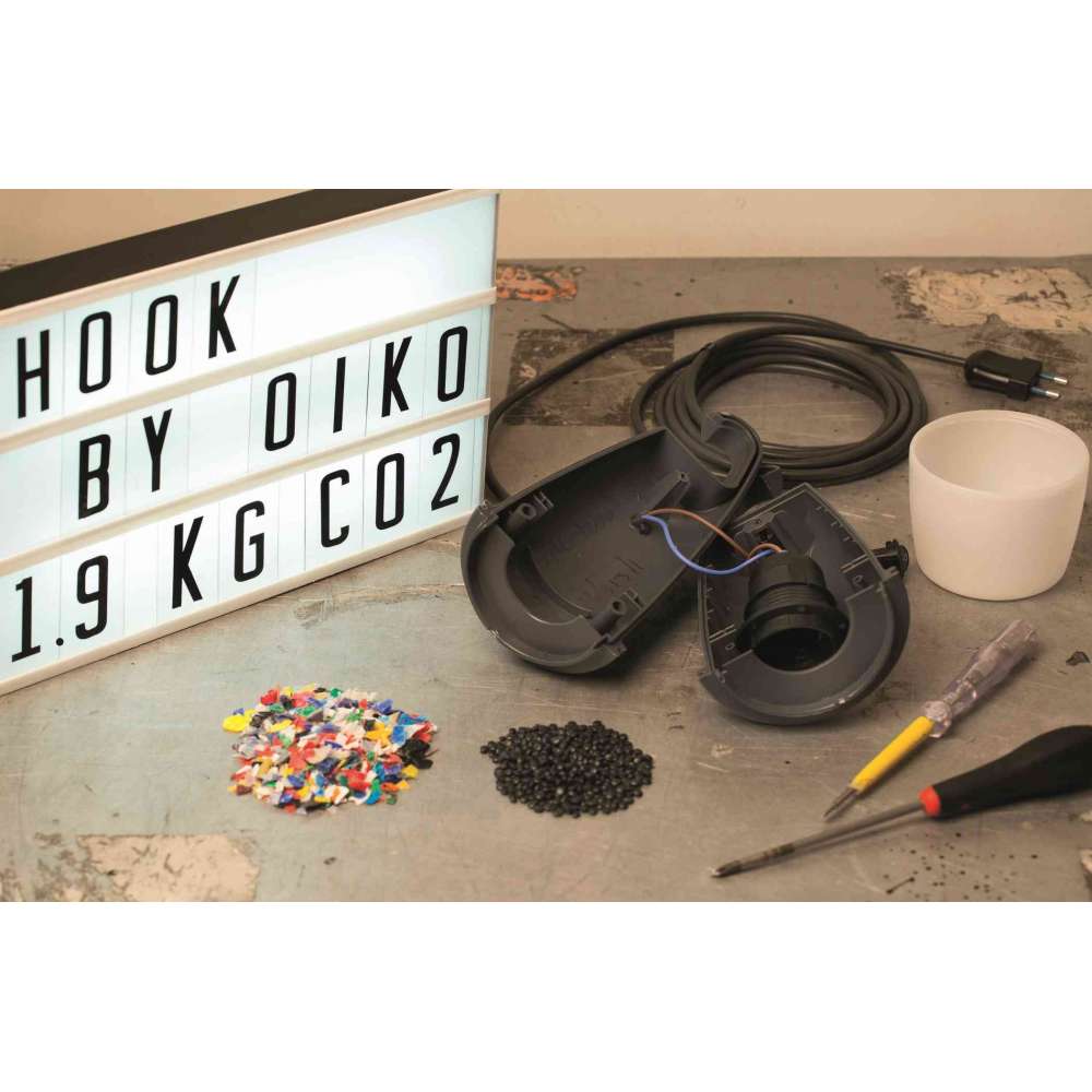 Hook to produkt ekologiczny wytwarzany z materiałów pochodzących z recyklingu, nadających się do recyklingu i wolnych od toksyn; oprawa wyprodukowana w 100% w Hiszpanii z przetworzonych zakrętek do butelek.