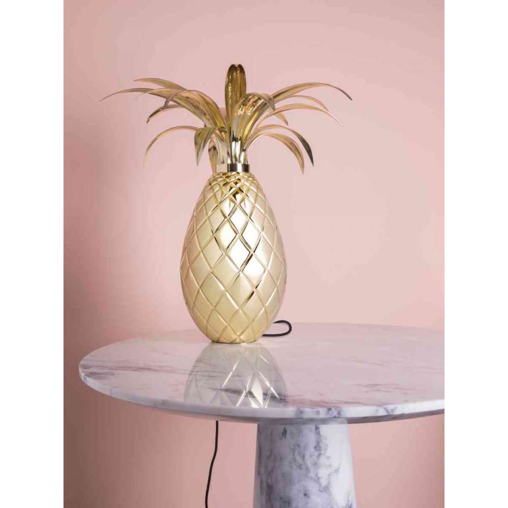 Miranda to fantazyjna lampa stołowa w kolorze ananasa. Uformowany w kształt klasycznego ananasa, od dawna klasyczny symbol w sztuce zdobniczej i architekturze, oznacza również powitanie i gościnność. Wykończony z pozłacanego mosiądzu, nosi imię Carmen Mirandy, która nosiła na głowie kolorowe i tropikalne owoce. Niepowtarzalny kształt i piękny wygląd.