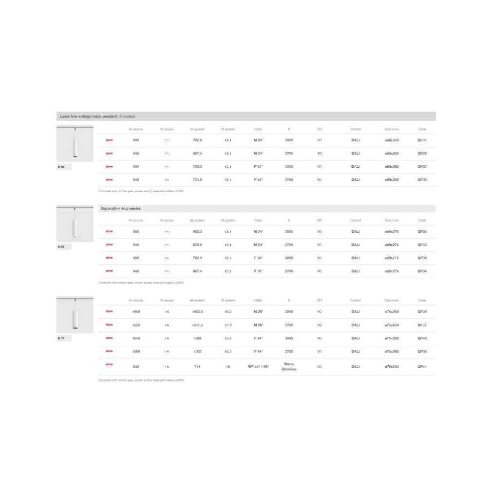 • Montaż na szynie NN (48V) • Gama zawieszek wyposażonych w wbudowaną przetwornicę DC/DC ukrytą w adapterze • Możliwość regulacji długości przewodu i układu sprzęgającego z mocowaniem bagnetowym • Połączenie szynoprzejściowe z systemem szybkiego mocowania i zabezpieczeniem przed rozdarciem • Korpus oświetlenia z malowanego aluminium: • Soczewki optyczne High Definition z metalizowanego materiału termoplastycznego. • Super Comfort ( UGR • Kompatybilny z akcesorium Beacon do szynoprzewodu 48V • IP20 Laser to pierwsza kolekcja Mini-me w sektorze oświetleniowym, z niezwykłym rozwiązaniem dla obu oświetlenie i dekorowanie przestrzeni za pomocą oświetlenia typu downlight, dyskrecja i elegancja. Obejmuje to spełnienie wszystkich wymagań aplikacji w handlu, hotelarstwie i środowiskach mieszkaniowych, z oświetleniem typu downlight, które ma do zaoferowania. Laser to innowacyjne połączenie formy, koloru, wymiarów, zastosowań, optyki, technologii i funkcjonalności z jedną wspólną cechą: dobrym samopoczuciem wizualnym zarówno w wersji Comfort, jak i Super Comfort. Ekskluzywna wersja Warm Dimming odtwarza efekt ściemniania lampy halogenowej i przywołuje magię przeszłości, kiedy mniej światła oznaczało ciepło, miękkość i ciszę. Optyka Opti Beam obejmuje opcje stałe, regulowane (wewnętrznie i zewnętrznie) oraz naścienne. Laser to arcydzieło mikrochirurgii świetlnej, które dodaje wartości wyjątkowym doznaniom.Odbiorca: :
