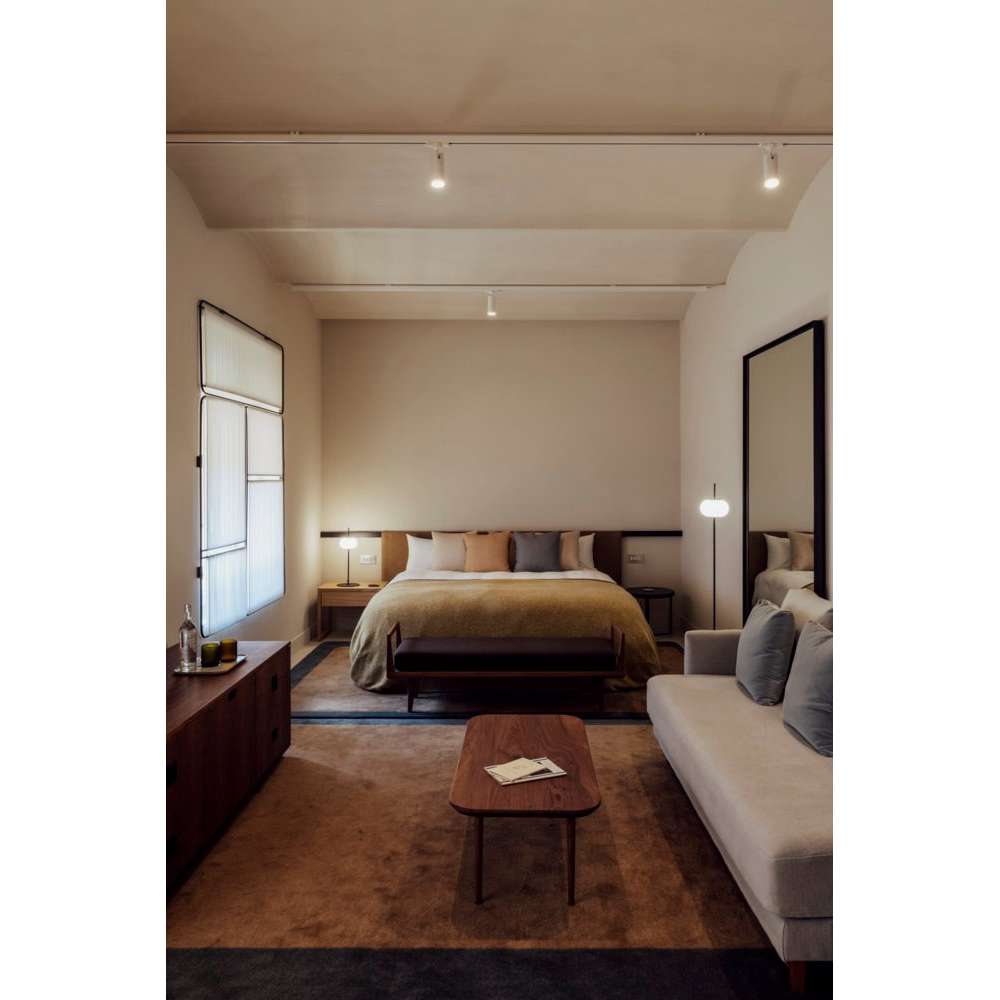 Haul to elastyczna kolekcja oświetlenia do przestrzeni domowych i publicznych. Prostota i harmonia tej lampy tkwi w czystości cylindra o różnych rozmiarach świecącego skupionym światłem. Dostępna gama różnych formatów, w tym lampy wiszące, ścienne, sufitowe, szynowe i nocne, a także możliwość zamontowania wielu lamp z podstawą osi obrotu, sprawiają, że jest to bardzo wszechstronna kolekcja. Mamy modele z białym matowym lakierem i czarnym matowym lakierem, które idealnie łączą się z czystością i elegancją ich kształtu.