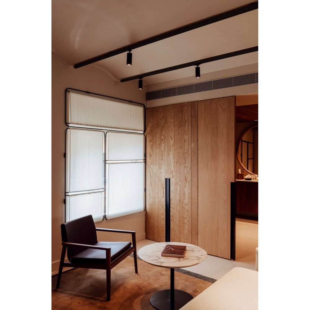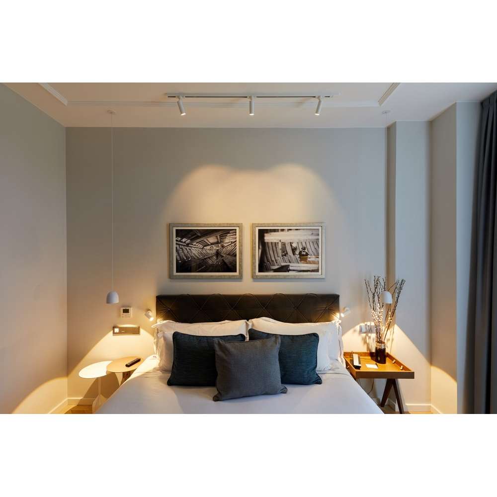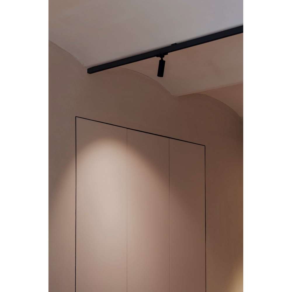 Haul 6851 to lampa szynowa LED z wytłaczanego aluminium firmy Flemming Bjorn. Źródło światła: -1 x DOB LED 7 W | 665 lumenów | 2700 tys. | CRI 90 | 3 – krok MacAdam | PF. 0,95 | Ściemniana (6851/6852) -1 x żarówka LED typu retrofit GU10 8W | 50 mm Kod 2123 | CRI 80 700 lumenów | 2700 tys. | Możliwość przyciemniania (6773/6774) -1 x DOB LED 5 W | 500 lumenów | 2700 tys. | CRI 90 | 3 – krok MacAdam | PF. 0,95 | Możliwość przyciemniania (6797/6798) Haul to elastyczna kolekcja oświetlenia do przestrzeni domowych i publicznych. Prostota i harmonia tej lampy tkwi w czystości cylindra o różnych rozmiarach świecącego skupionym światłem. Dostępna gama różnych formatów, w tym lampy wiszące, ścienne, sufitowe, szynowe i nocne, a także możliwość zamontowania wielu lamp z podstawą osi obrotu, sprawiają, że jest to bardzo wszechstronna kolekcja. Mamy modele z białym matowym lakierem i czarnym matowym lakierem, które idealnie łączą się z czystością i elegancją jego kształtu. Właściwości Modele o średnicy 40 mm: Cylinder z wytłaczanego aluminium. Wykończenie w białym matowym lakierze (RAL 9016) i matowym czarnym lakierze (RAL 9005). Wewnętrzny rdzeń, z funkcją radiatora i obudową LED, wtryskiwany z aluminium. odbłyśnik z poliwęglanu z wykończeniem z aluminium o wysokiej próżni. Podstawa do mocowania do ściany lub sufitu, wtryskiwana ze znalu. Wykończenie w białym matowym lakierze (RAL 9016) i matowym czarnym lakierze (RAL 9005). Modele o średnicy 55 mm: Cylinder z wytłaczanego aluminium. Wykończenie w białym matowym lakierze (RAL 9016) i matowym czarnym lakierze (RAL 9005). Wewnętrzny rdzeń, z funkcją radiatora i obudową LED, wtryskiwany z aluminium. „Oprawka” LED z wtryskiwanego poliwęglanu. Odbłyśnik z wtryskiwanego poliwęglanu, wykończenie w kolorze białym Podstawa do mocowania do ściany lub sufitu, wtryskiwana ze znalu. Wykończenie w białym matowym lakierze (RAL 9016) i matowym czarnym lakierze (RAL 9005). Pierścień dekoracyjny z wtryskiwanego poliwęglanu. Montaż pod ciśnieniem. Wykończenie w kolorze białym, czarnym i półprzezroczystym.
