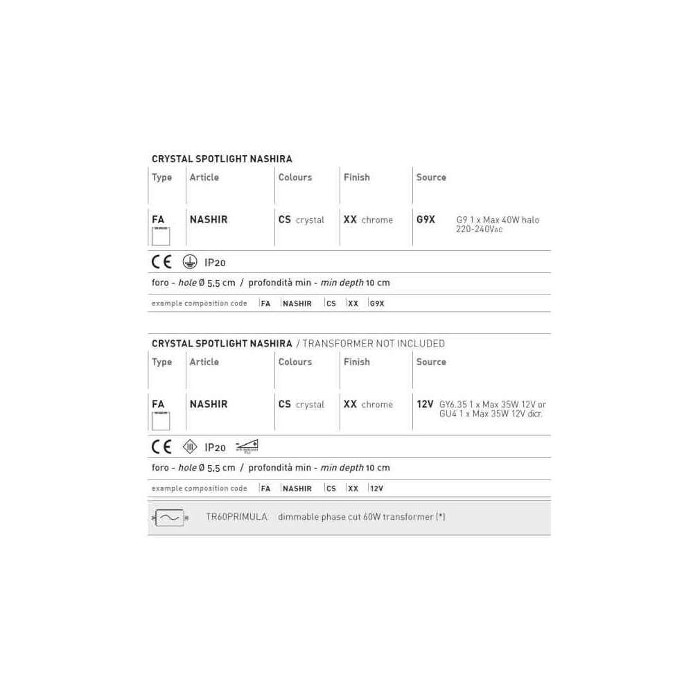 Z transformatorem Otwór: Ø 5,5 cm Minimalna głębokość: 10 cm Crystal Spotlight to kolekcja reflektorów ( Mencar i Nashir ) w szlachetnym czeskim kryształ z metalowymi okuciami.Zapisz się do naszego newslettera i otrzymuj oferty specjalne i rabaty dla stałych i nowych klientów! Wystarczy, że podasz nam swój adres e-mail i nie przegapisz już żadnej oferty!