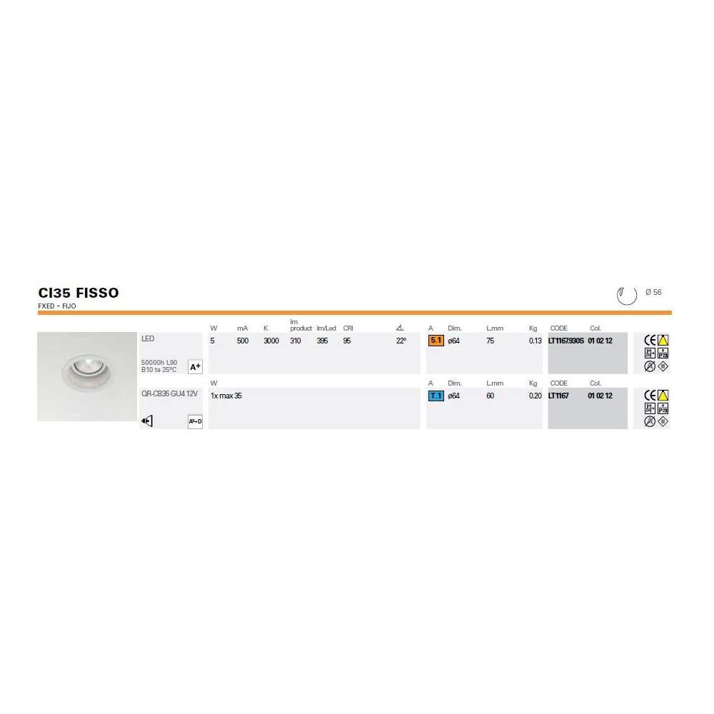 Downlight do wbudowania do montażu na ścianie i suficie, mocowany lub regulowany do zintegrowanego źródła LED lub do lamp halogenowych/LED QR-CB 35, QR-CB 51, QR-LP 111 12V/230V, QPAR16. Zdalny zasilacz dostępny jako akcesorium. Korpus, super smukły 18mm. rama szerokości i grupa optyczna z malowanego lub chromowanego metalu. Może być również instalowany w ścianach betonowych lub ceglanych za pomocą specjalnej skrzynki ściennej wykonanej ze stali ocynkowanej lub aluminium, dostępnej jako wyposażenie dodatkowe. Stopień ochrony IP20.