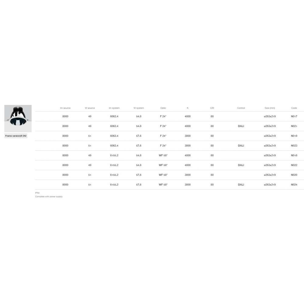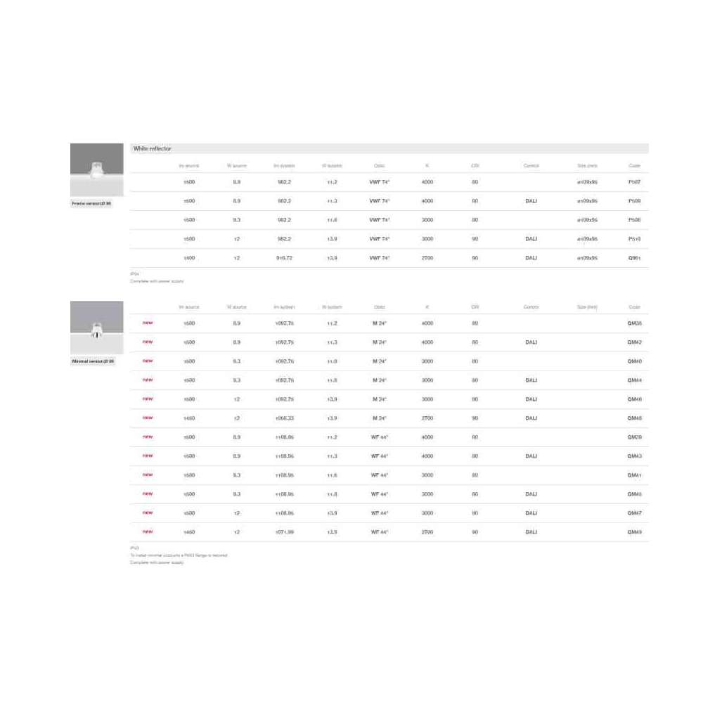 • Korpus i radiator z odlewanego ciśnieniowo i wytłaczanego aluminium. • Odbłyśnik z metalicznie wykończonego materiału termoplastycznego z ochroną przed zarysowaniem dla doskonałej wydajności świetlnej i komfortu wizualnego. • Wersje odpowiednie do stosowania w ustawieniach z UGR • Dostępne wersje oświetlenia ogólnego z białym odbłyśnikiem. • Dostępne z okablowaniem elektronicznym i DALI. • IP20 • IP43 na widocznym korpusie montaż po instalacji (Wersje minimalne). • IP54 na widocznym korpusie uchwytu po instalacji (wersje z ramą).Odbiorca: :