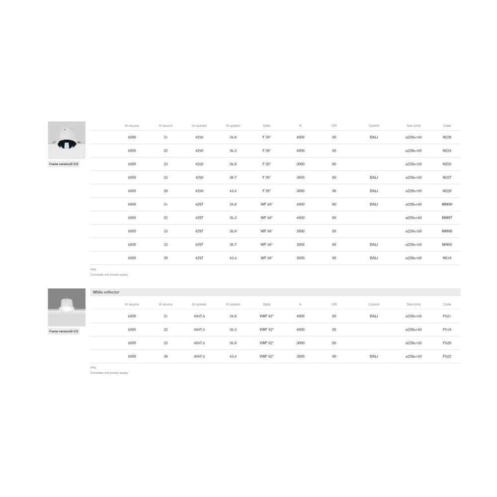 • Dostępne wersje oświetlenia ogólnego z białym odbłyśnikiem.