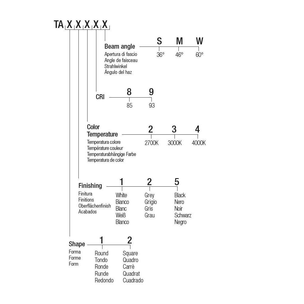 Asortyment opraw Tag 24 VDC łączy w sobie wysoką wydajność i niesamowitą kompaktowość. Rewolucyjny w rozpraszającym, funkcjonalnym projekcie, oferuje możliwość łączenia temperatur barwowych i kątów wiązki w wersjach CRI85 i CRI93.Odbiorca: :