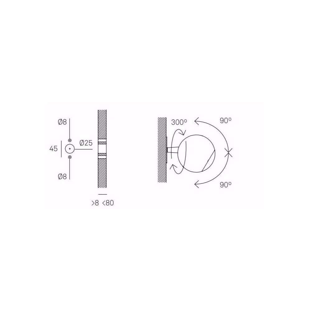 - Ta seria ma dwie różne wersje oprócz kinkietów: jedna z wstrzykiwaną podstawą, która zawiera własny przełącznik, a druga zbudowana -w wersji, w której minimalna szerokość musi wynosić 8 mm, a maksymalna 80 mm. W tej drugiej wersji przełącznik musi być zewnętrzny;