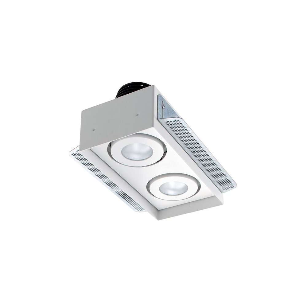 Oprawa do wbudowania do zastosowań wewnętrznych; wpuszczany (sufit); korpus ze stopu aluminium anodowanego EN AW 6082, wykończenie z blachy; wykończenie: biały; 2 (1+1) wielochipowe diody LED mocy; 26W - 230Vac; zasilacz: dołączony i okablowany; zawiera kabel 0,30 m; całkowite dostarczone lumeny: 950 lm (3000 K) na emisję; regulowana optyka ±15°: 20°, 40°; kolor LED: biały - 2700K, 3000K, 4000K; stopień ochrony: IP40, IP43 zainstalowany; temperatura pracy: 0°C +45°C; temperatura ekranu: max 40°C (Ta 25°C); bezpieczeństwo fotobiologiczne: grupa ryzyka 1 zgodnie z EN62471:2006; klasa urządzenia: II; waga 1,00 kg; wymiary 185x95x101 mm; rozmiar wycięcia 95x185 mm; całkowita objętość 190x280x150 mm; ściemnianie za pomocą DALI, 1-10V, PUSH; akcesoria: obudowa zewnętrzna WC2402