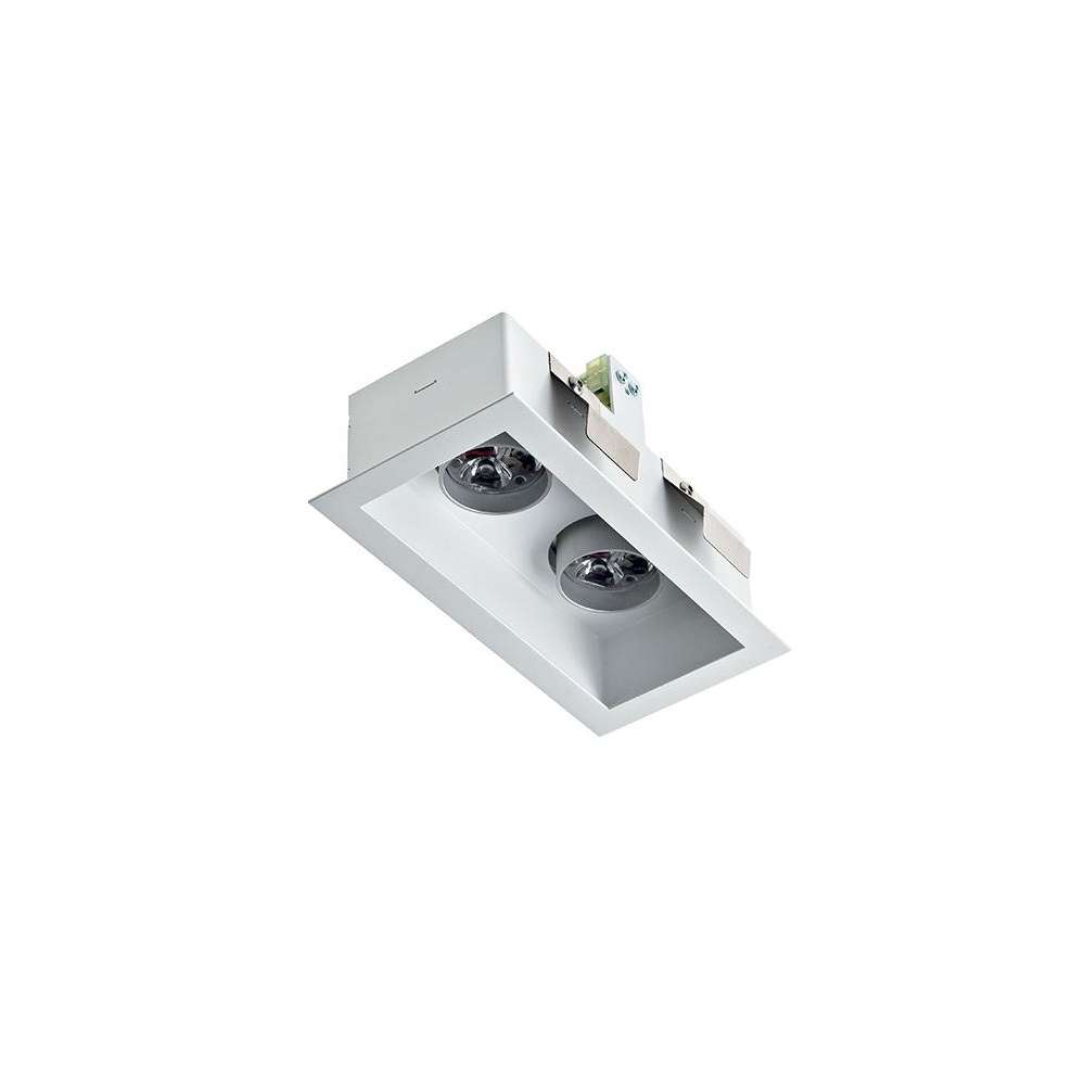 Downlight do wbudowania do zastosowań wewnętrznych; wpuszczany (sufit); korpus ze stopu aluminium anodowanego EN AW 6082, wykończenie z blachy; wykończenia: biały, czarny; 6 (3+3) diod LED zasilania; max 12W (6 diod mocy x 2W) - max 500mA; w zestawie listwa zaciskowa; połączenie szeregowe; całkowite dostarczone lumeny: 336 lm (3000K, 350mA) na emisję; regulowana optyka ±15°: 12°, 24°, 56°; kolor LED: biały - 2700K, 3000K, 4000K, 5000K; niebieski; RGB; stopień ochrony: IP40; temperatura pracy: 0°C +45°C; temperatura ekranu: max 40°C (Ta 25 ° C); bezpieczeństwo fotobiologiczne: grupa ryzyka 1 zgodnie z EN62471:2006; klasa urządzeń: III; waga 0,60 kg; wymiary 85x170x83 mm; rozmiar wycięcia 75x155 mm; całkowita objętość 175x255x150 mm; ściemnianie za pomocą ściemnialnego zasilacza; akcesoria: obudowa zewnętrzna do ścian pełnych WC1902