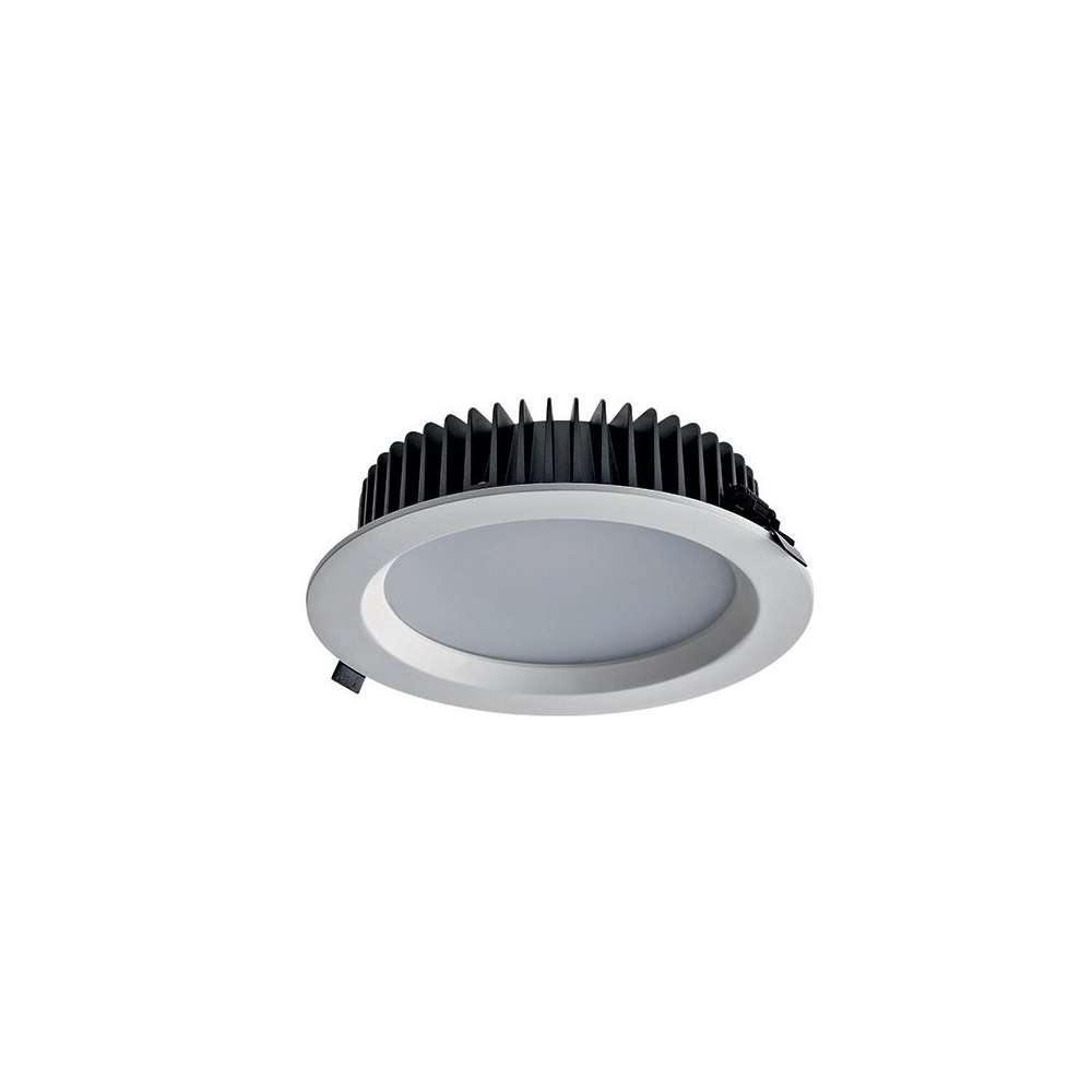 Downlight do wbudowania do zastosowań wewnętrznych; wpuszczany (sufit); korpus i wykończenie z odlewanego ciśnieniowo stopu aluminium EN AB 47100, osłona z poliwęglanu matowego z jednej strony; wykończenie: biały; matryca LED mocy; 24W - 230Vac; zasilacz: dołączony i okablowany; zawiera kabel 0,30 m; suma dostarczonych lumenów: 1680 lm (3000K); optyka rozproszona; kolor LED: biały - 3000K, 4000K; stopień ochrony: IP40, IP44 zainstalowany; temperatura pracy: 0°C +45°C; temperatura ekranu: max 40°C (Ta 25°C); bezpieczeństwo fotobiologiczne: grupa ryzyka 1 zgodnie z EN62471:2006; klasa urządzenia: II; waga 1,10 kg; wymiary Ø197x53 mm; rozmiar wycięcia Ø180 mm; całkowita objętość Ø280x120 mm