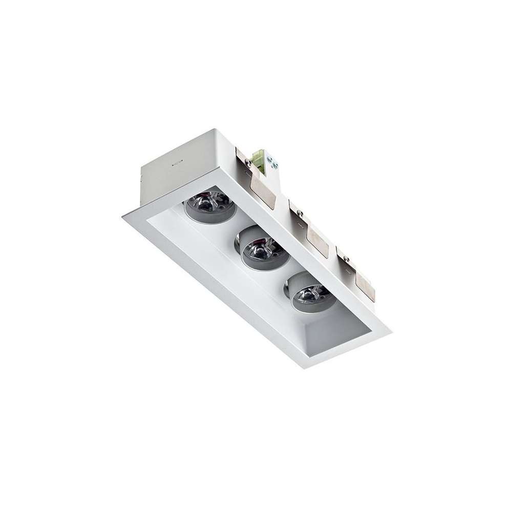 Oprawa do wbudowania do zastosowań wewnętrznych; wpuszczany (sufit); korpus ze stopu aluminium anodowanego EN AW 6082, wykończenie z blachy; wykończenia: biały, czarny; 9 (3+3+3) diod LED zasilania; max 18W (9 diod mocy x 2W) - max 500mA; w zestawie listwa zaciskowa; połączenie szeregowe; całkowite dostarczone lumeny: 336 lm (3000K, 350mA) na emisję; regulowana optyka ±15°: 12°, 24°, 56°; kolor LED: biały - 2700K, 3000K, 4000K, 5000K; niebieski; RGB; stopień ochrony: IP40; temperatura pracy: 0°C +45°C; temperatura ekranu: max 40°C (Ta 25°C); bezpieczeństwo fotobiologiczne: grupa ryzyka 1 zgodnie z EN62471:2006; klasa urządzeń: III; waga 0,80 kg; wymiary 85x240x79 mm; rozmiar wycięcia 75x225 mm; całkowita objętość 175x325x150 mm; ściemnianie za pomocą ściemnialnego zasilacza; akcesoria: obudowa zewnętrzna do ścian pełnych WC1903