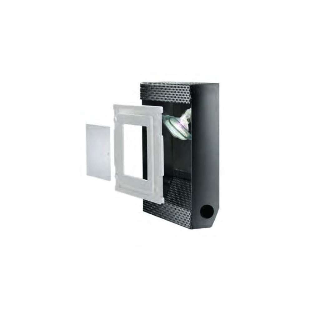Invisibile 10 x 10 - Montaż podtynkowy. Może być montowany na sufitach i ścianach z płyt gipsowo-kartonowych lub ceglanych (patrz szczegółowe instrukcje dotyczące cegły). Przód z Coral®. Obudowa ze stali ocynkowanej niezależna od korpusu przedniego. Ekstra biały klosz z matowego szkła mocowany za pomocą przezroczystej śruby do sufitu/ściany. Wymiary korpusu: 190 x 70 x 245 mm, 190 x 90 x 245 mm, 190 x 90 x 515 mm. Otwór do emisji światła: 100 x100 mm. Dostępne w okablowaniu: dichroiczna QR CB 51 (45°/90°), świetlówka TC-F (90°), LED (90°). Dostarczany z elektronicznym transformatorem ściemnianym lub statecznikiem elektronicznym.