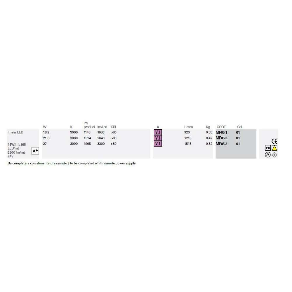 Seria opraw do montażu na suficie, wpuszczania lub wpuszczania bez przycięcia na płaskich powierzchniach lub do wbudowania bez przycięcia pod kątem zewnętrznym i wewnętrznym. Bezpośrednia rozproszona emisja światła. Liniowe źródła LED, do uzupełnienia zdalnym sterownikiem 24Vdc. Korpus z wytłaczanego aluminium, lakierowany, w komplecie z mlecznobiałym kloszem z poliwęglanu. Boczne zaślepki systemu Light Proof. Stopień ochrony IP40 lub IP65.