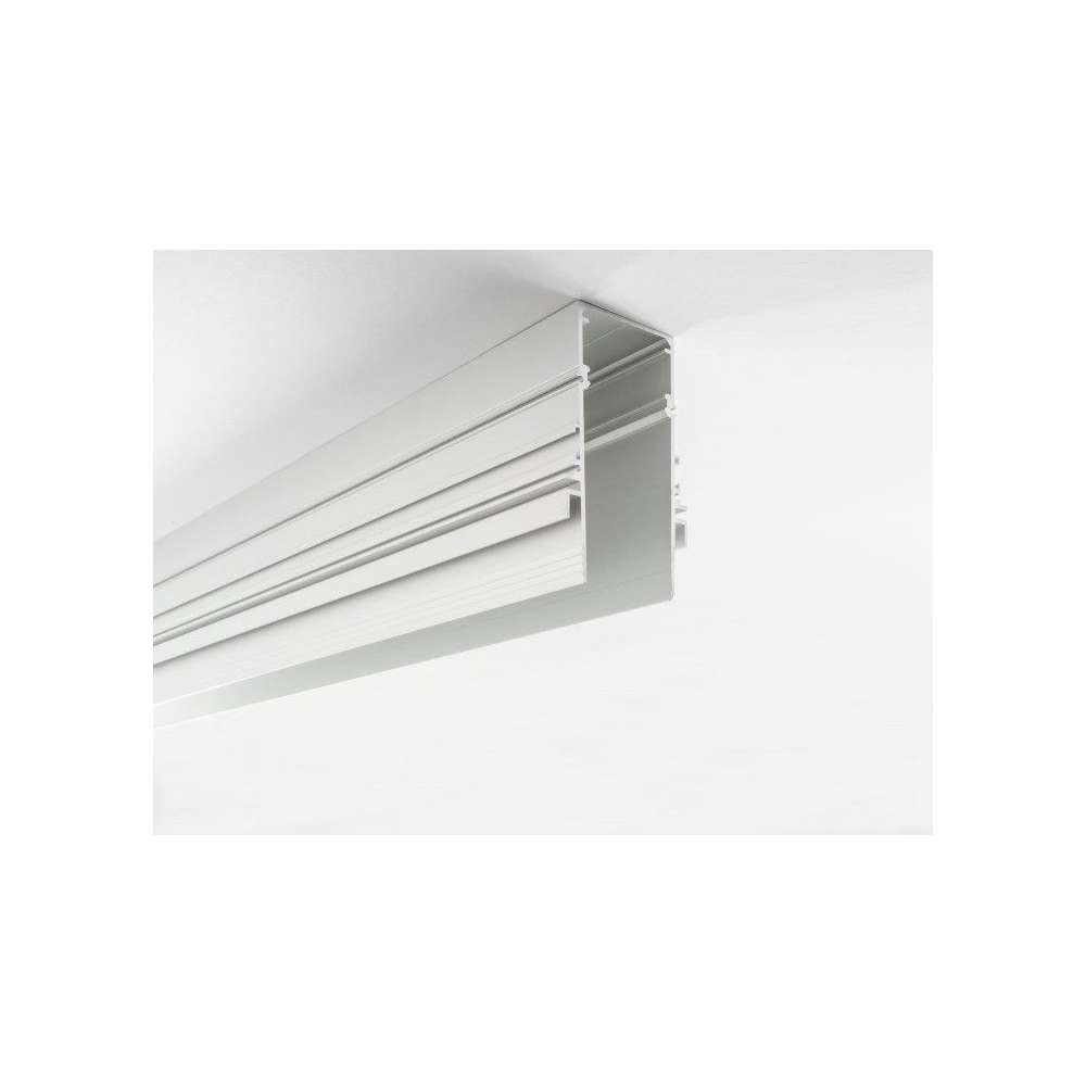 Bezwykończeniowe, całkowicie chowane, wpuszczane systemy modułowe dla profili systemów obudowy i gotowych modułów MINIFILE, FILE, FILE 2, FILE 2 COMPLEMENTI, LEVA i FARETÈN do tworzenia wycięć światła ciągłego lub tam, gdzie moduły świetlne zastępują puste przestrzenie, w płytach gipsowo-kartonowych sufit lub fałszywe ściany lub w ścianach betonowych lub ceglanych. Korpus z ekstrudowanego aluminium lakierowanego lub anodowanego, o określonej długości lub docięty na wymiar. Należy uzupełnić bocznymi zaślepkami i osłoną wykończeniową pustych przestrzeni w pozycji schowanej, aby określić wpływ ciał stałych i pustych przestrzeni. Może być również używany z liniowymi źródłami światła LED, do uzupełnienia opalizującym białym ekranem rozpraszającym PC i zdalnymi zasilaczami, aby stworzyć cofnięte rowki światła.