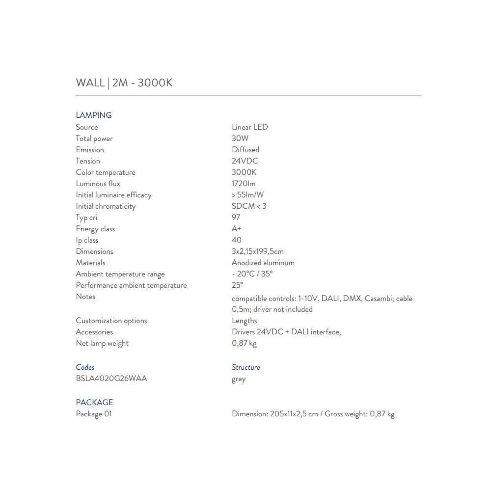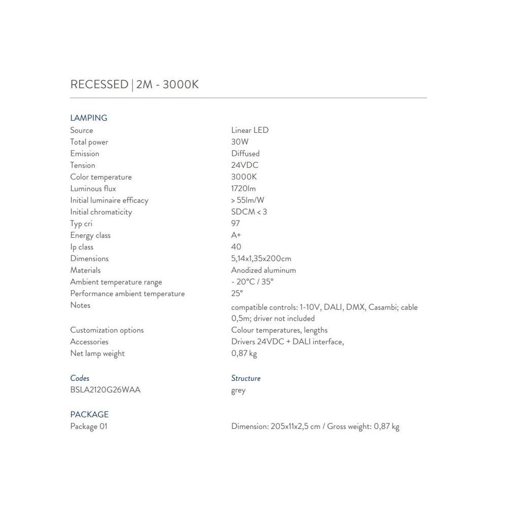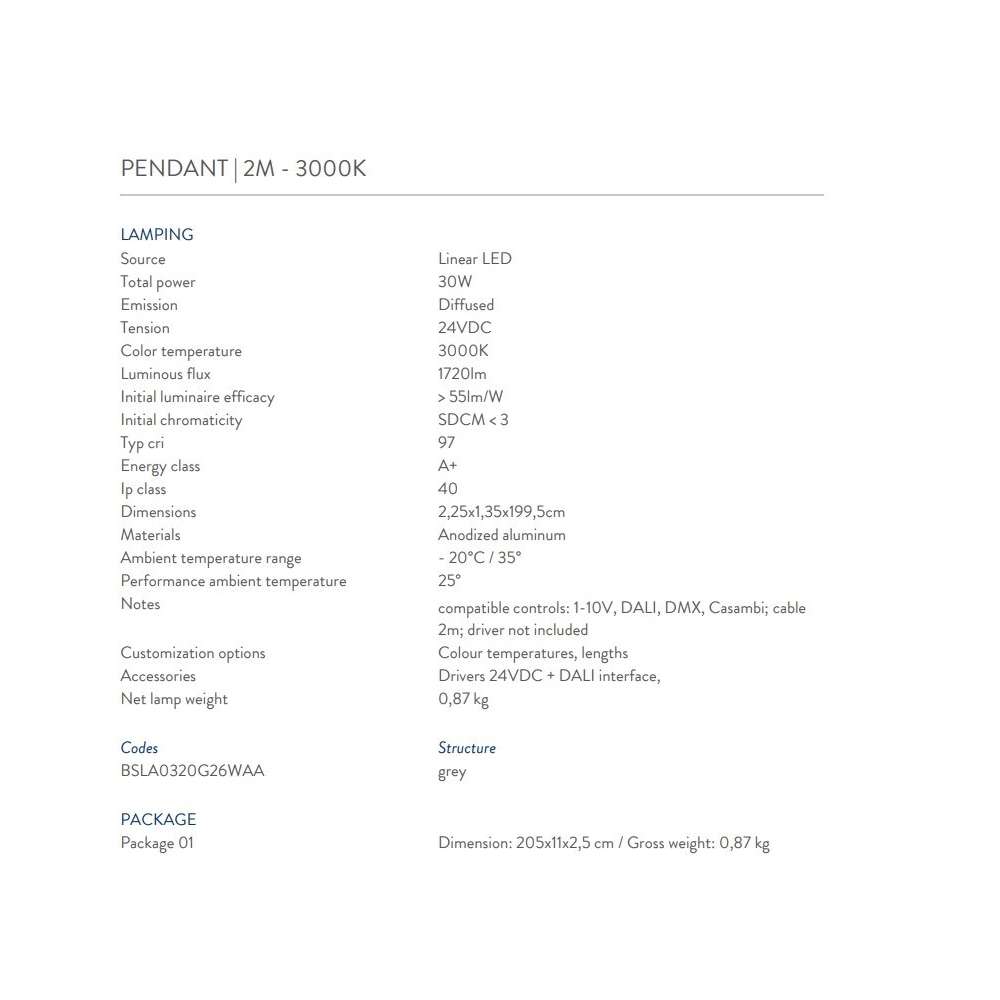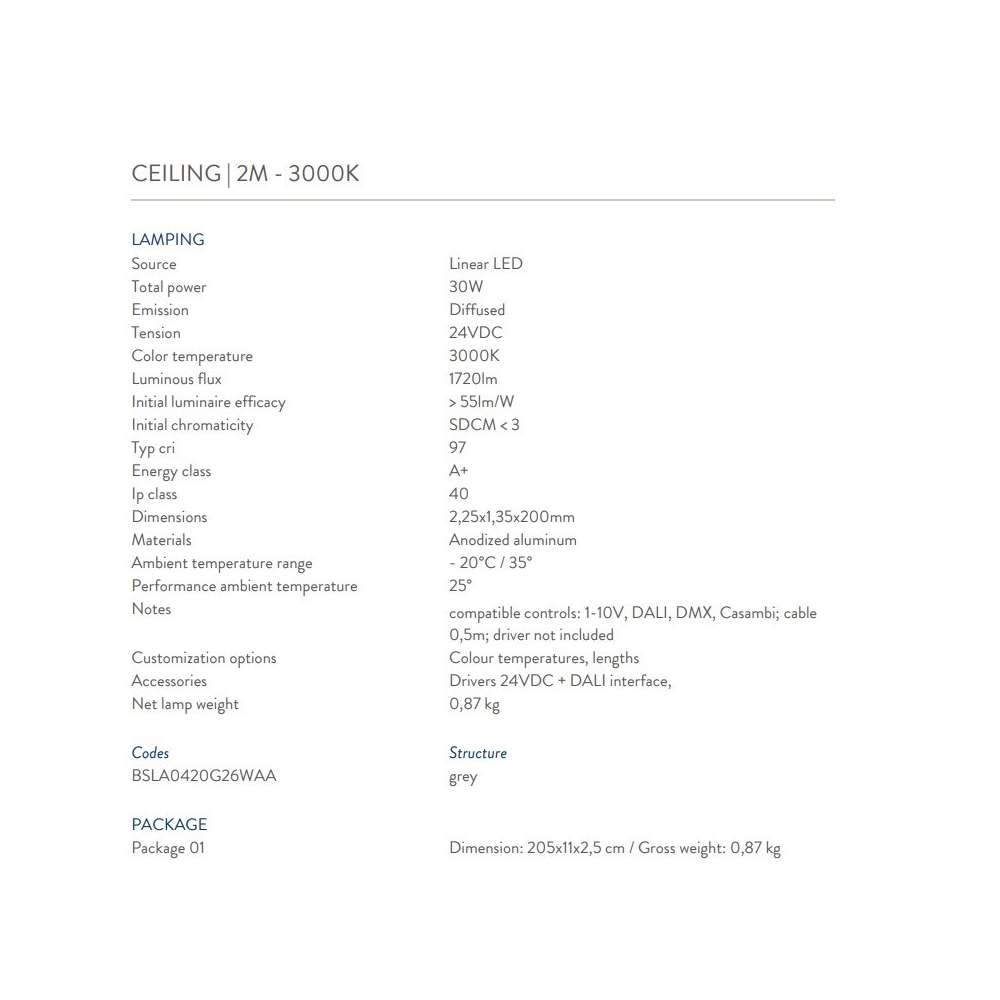 - 2m - 3000K: Całkowita moc 30W | Strumień świetlny 1720lm | Napięcie 24VDC | Typ cri 97 | Klasa energetyczna A +