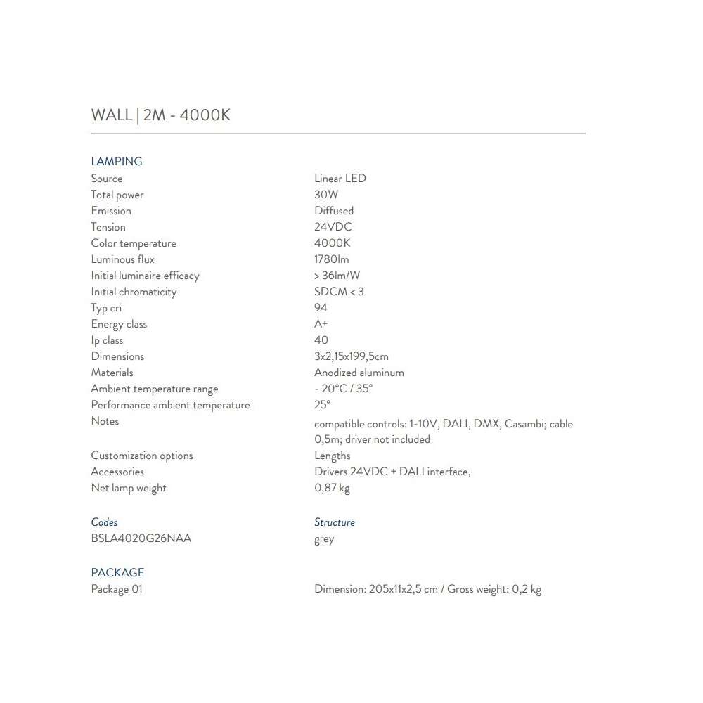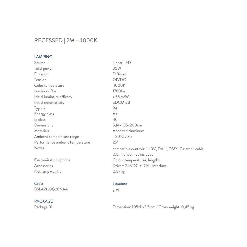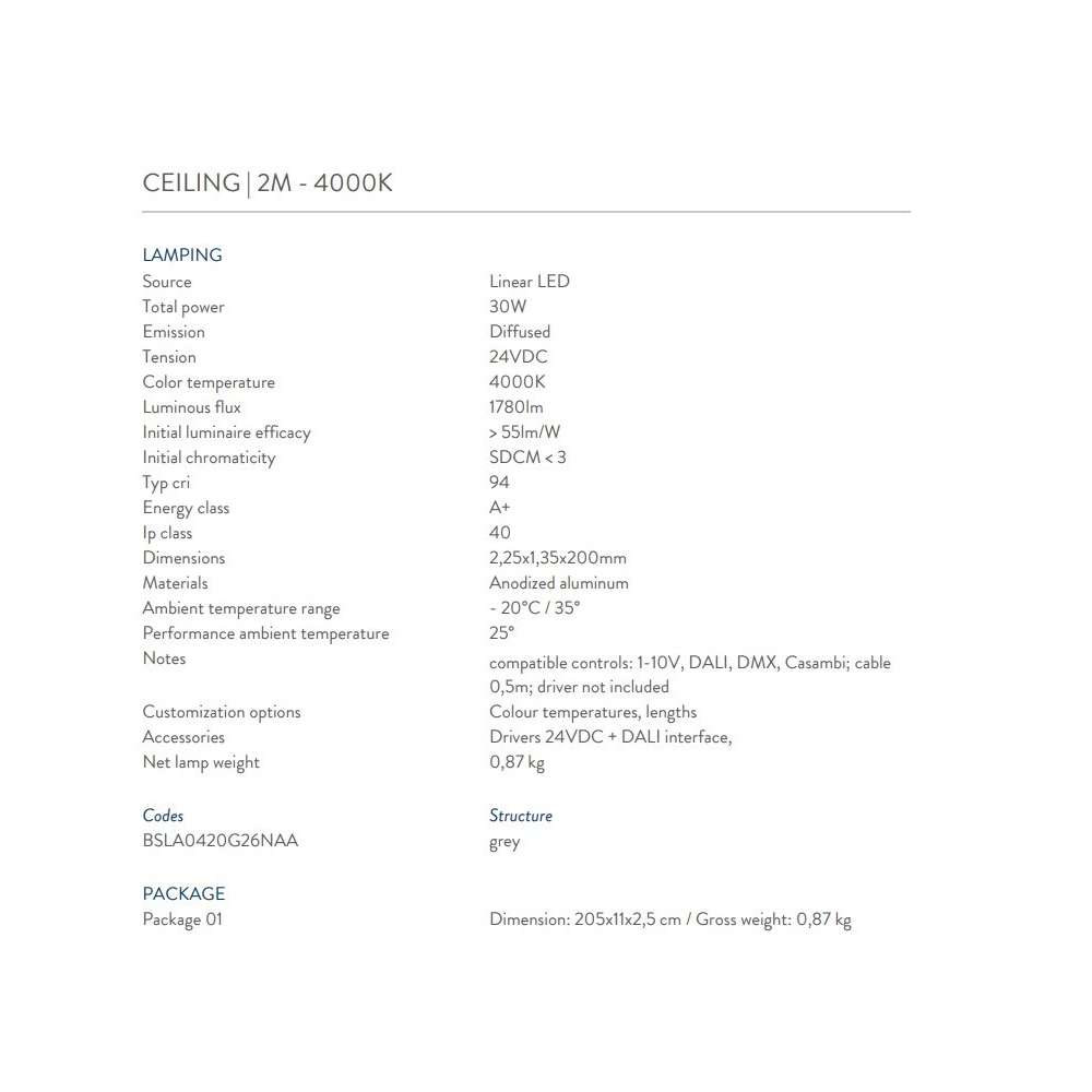 - 2m - 4000K: Całkowita moc 30W | Strumień świetlny 1720lm | Napięcie 24VDC | Typ cri 97 | Klasa energetyczna A+