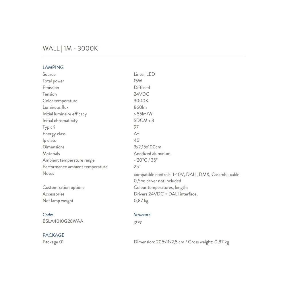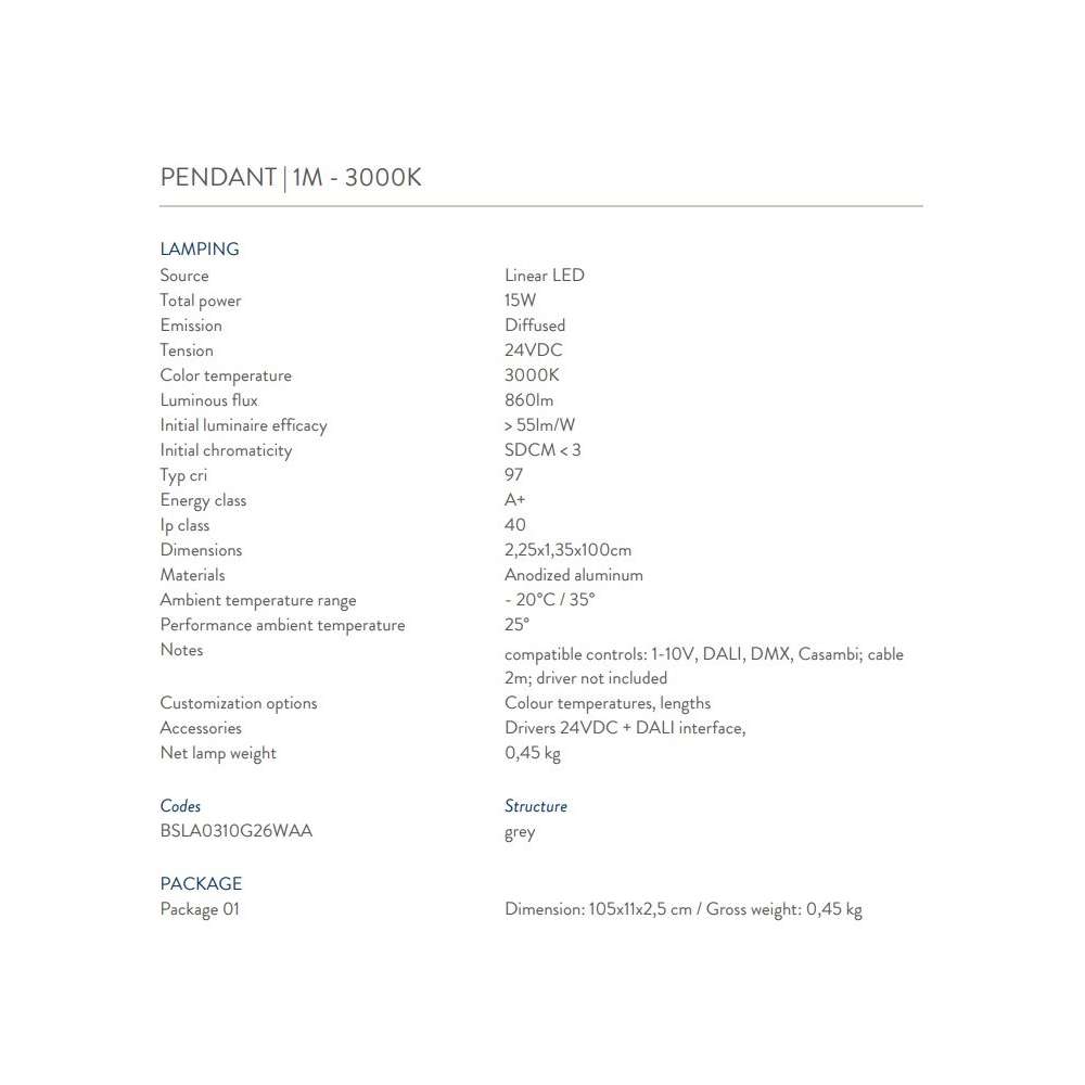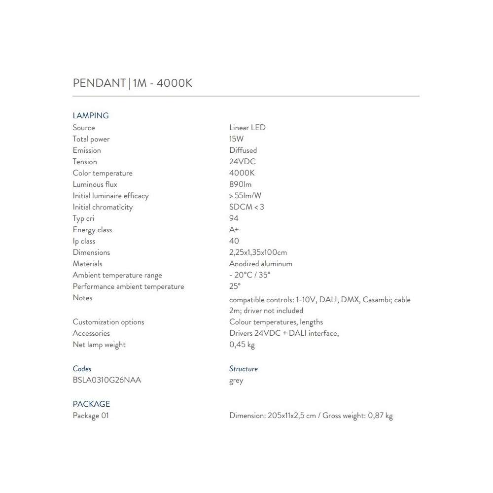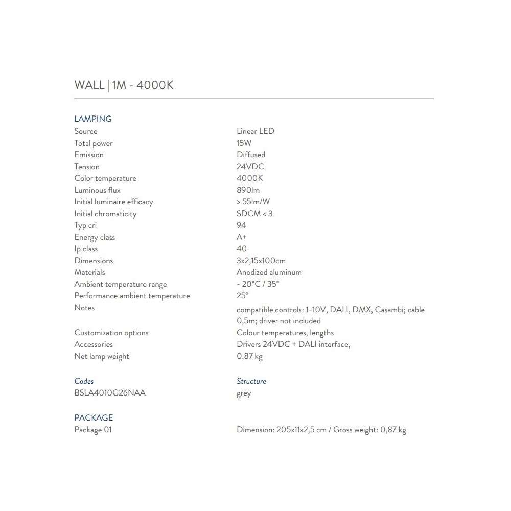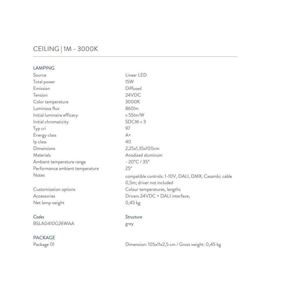 - 1m - 4000K: Całkowita moc 15W | Strumień świetlny 860lm | Napięcie 24VDC | Typ cri 97 | Klasa energetyczna A +