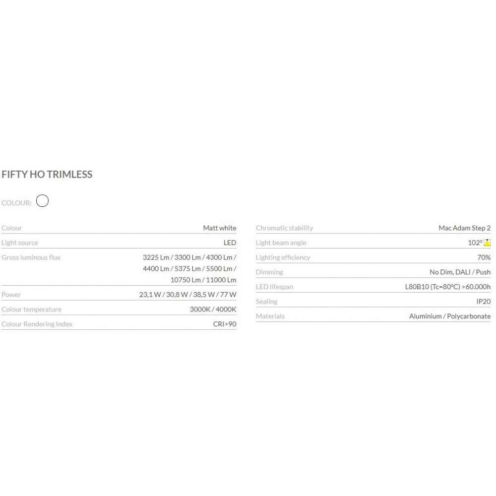 Fifty to wpuszczany profil LED firmy Arkoslight. Fifty, dostępny również w wersji bez wykończenia, idealnie nadaje się do oświetlenia podłużnego, gdzie jego dyfuzor przyczynia się do oświetlenia w sposób funkcjonalny. Ogólnie rzecz biorąc, profil ten jest w stanie podjąć się zadania podkreślenia różnych linii, brył czy pasów, które są określone w architekturze przestrzeni.