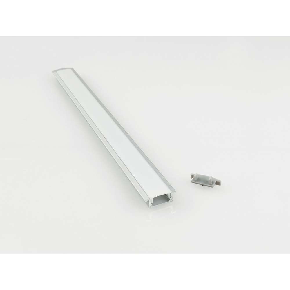 Wpuszczany profil aluminiowy do taśmy LED z przeźroczystym, opalizowanym lub trawionym kwasem kloszem o długości 2m. W komplecie zaślepki. Otwarte otwory w profilu aluminiowym do montażu.