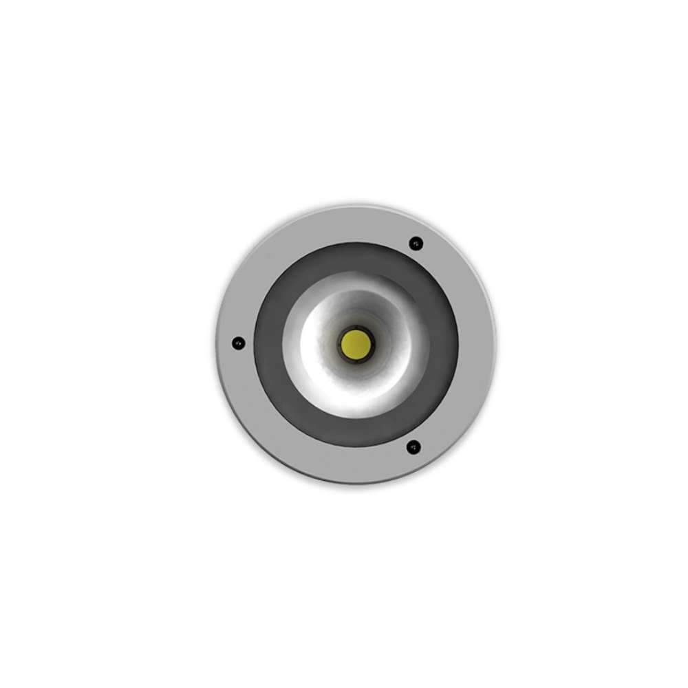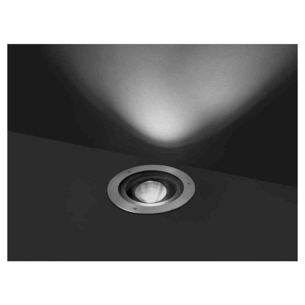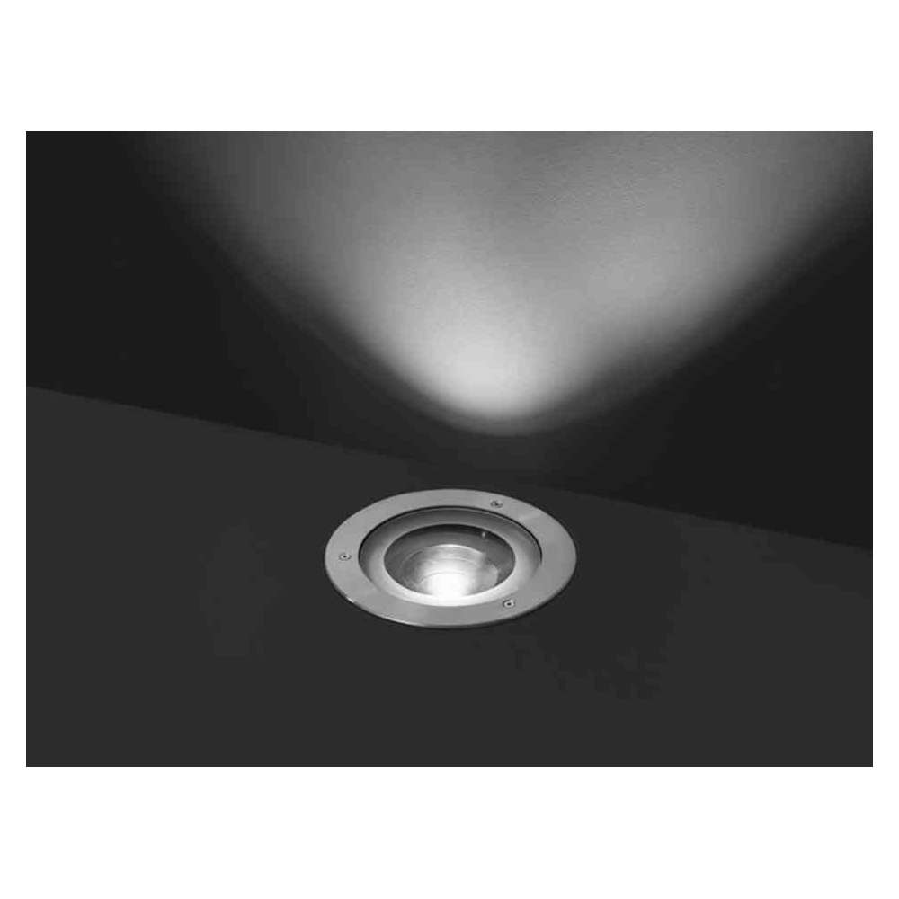 Hydrofloor Cob to oprawa do wbudowania w ziemię w okrągłym kształcie do montażu na zewnątrz, fosforanowana chromowana i malowana proszkowo poliestrowa obudowa z aluminium bez miedzi i rama ze stali nierdzewnej AISI 304, hartowane bezpieczne szkło, formowana uszczelka silikonowa . Symetryczny rozsył światła z regulowaną optyką.