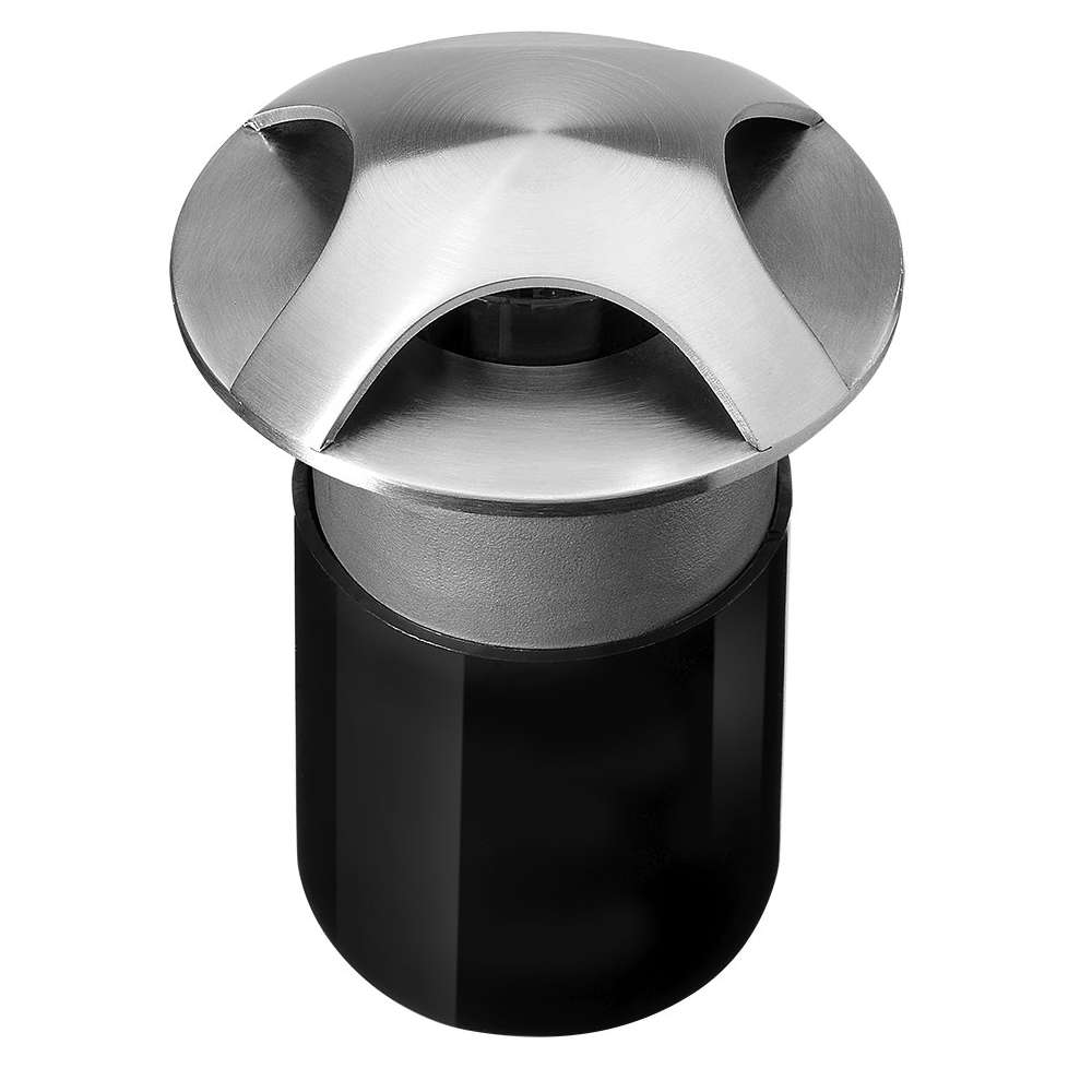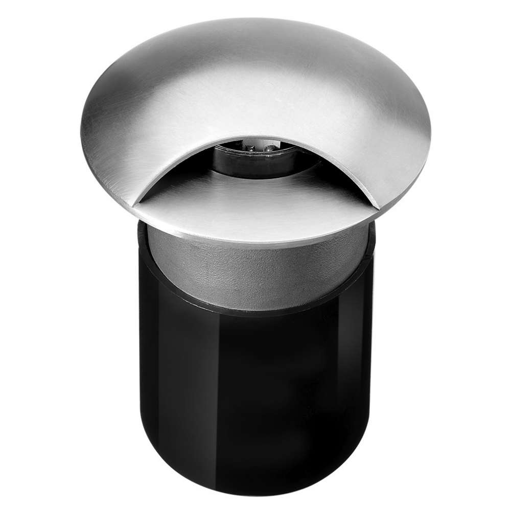 Okrągła, najazdowa oprawa najazdowa do montażu na zewnątrz, górna pokrywa z jednokierunkowym rozsyłem światła 1x90°. Korpus i górna pokrywa całkowicie wykonane ze stali nierdzewnej AISI 304, hartowane szkło bezpieczne, formowana uszczelka silikonowa. Wbudowany sterownik LED 220-240V 50-60Hz, z 1 diodą CREE XP-E2. Stopień ochrony IP67.