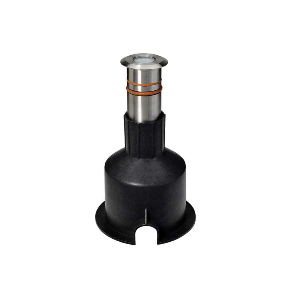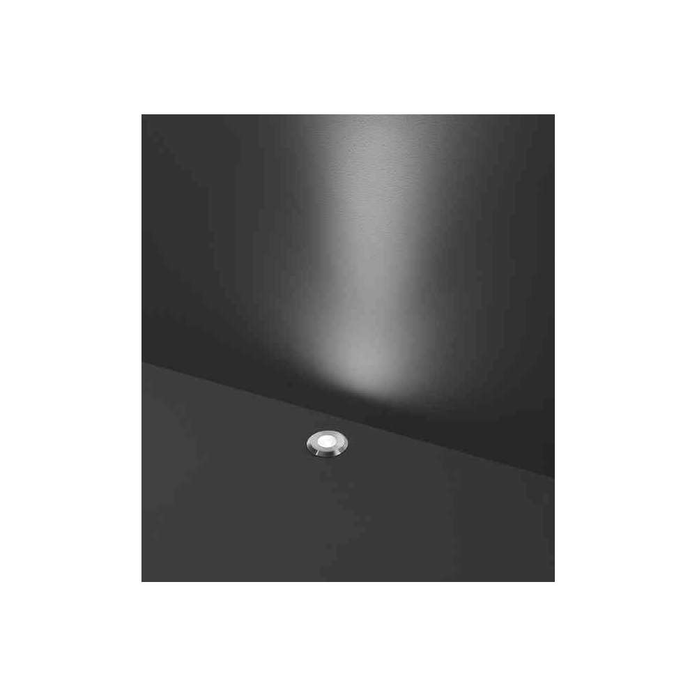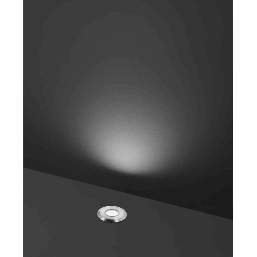 Okrągła oprawa do wbudowania w ziemię, korpus i rama ze stali nierdzewnej AISI316, klosz z hartowanego, mlecznego szkła bezpiecznego, formowana uszczelka silikonowa.